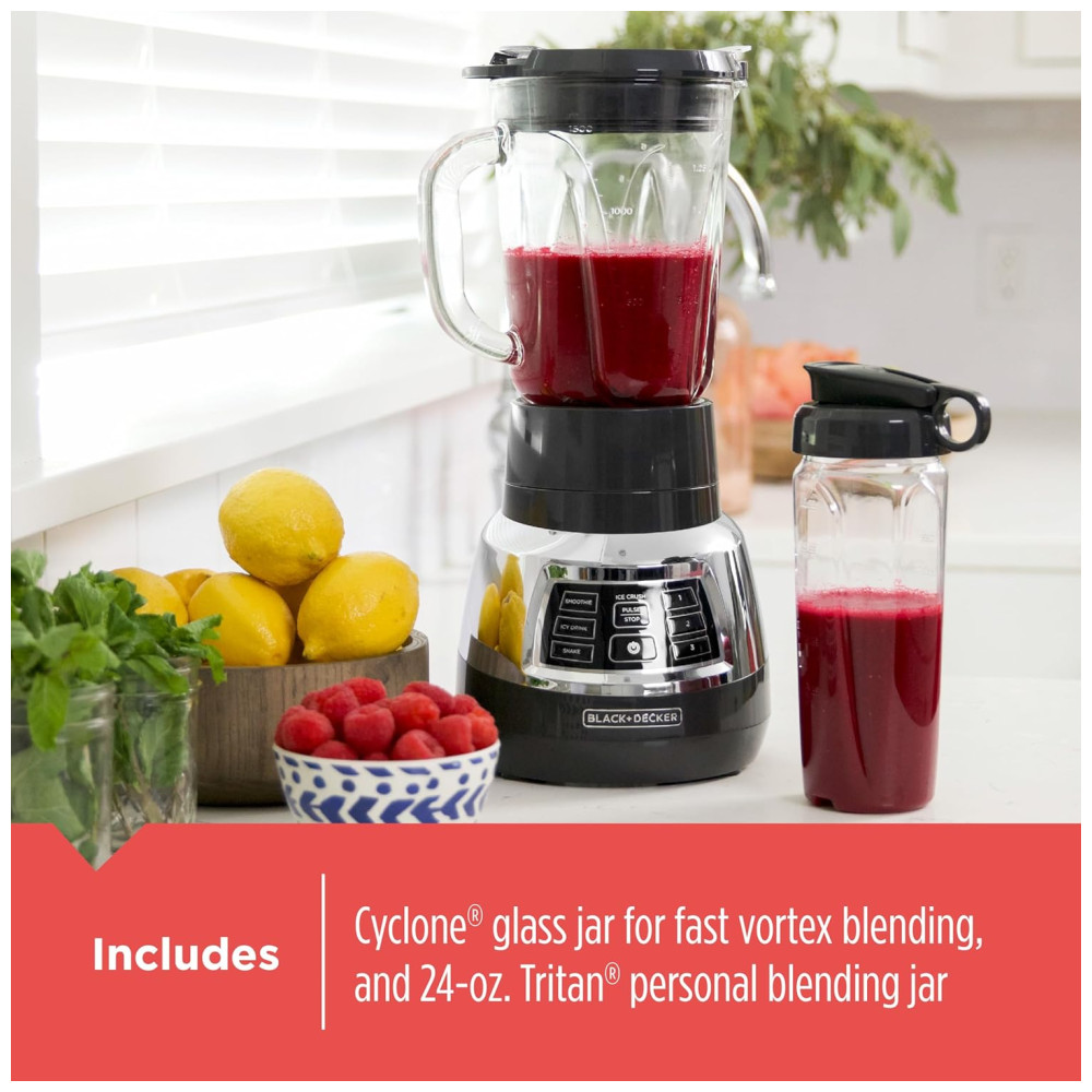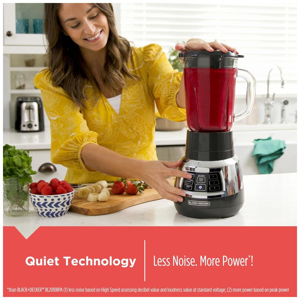 Liquidificador 710mL com Jarra de Vidro Lâmina Serrilhada e Silencioso 110V 900W BLACK+DECKER Prata