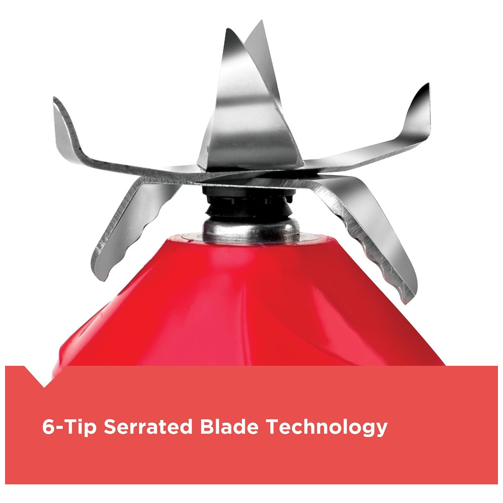 Tecnologia de Lâmina Serrilhada com 6 Pontas – A tecnologia de lâmina de mistura com 6 pontas serrilhadas trabalha em conjunto com o formato do jarro para criar um fluxo constante e um vórtice que direciona os ingredientes diretamente para as lâminas, proporcionando um desempenho rápido de mistura.