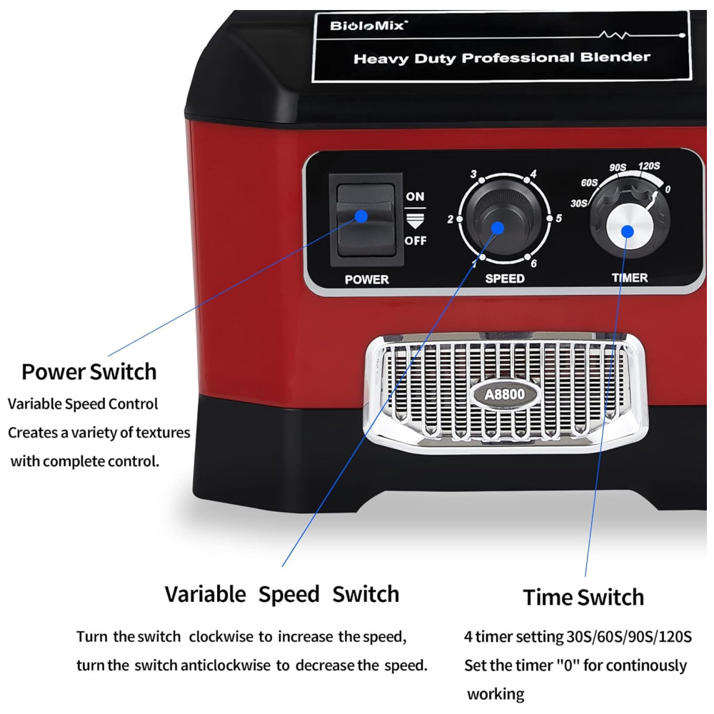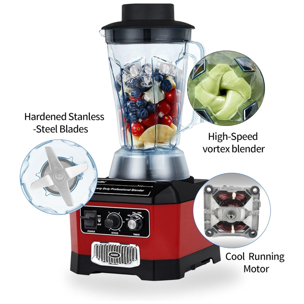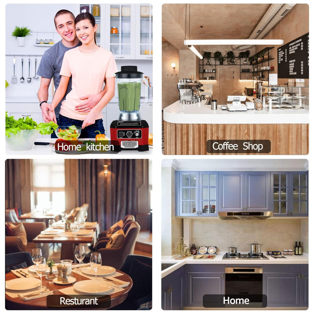 Desfrute de um motor potente de 2200W com pico de 2200W e 1600W nominal, capaz de triturar facilmente cubos de gelo e frutas congeladas. Com lâminas de aço inoxidável endurecido, o liquidificador comercial pode transformar grandes cubos de gelo em pequenos pedaços. Aproveite ao máximo os alimentos, pulverizando completamente cubos de gelo, frutas congeladas, legumes, sementes, nozes e muito mais. Controle de velocidade variável e função de timer para maior praticidade. Com 6 opções de velocidade e timers de 30S, 60S, 90S e 120S para parada automática, permite preparar receitas sem preocupações. Além disso, é um equipamento versátil que pode criar purês, misturar, picar, moer e bater. Fácil de limpar, basta enxaguar com água entre os preparos. Para ingredientes mais densos, basta adicionar água morna e detergente, acionar em alta velocidade por 30 a 60 segundos e enxaguar.