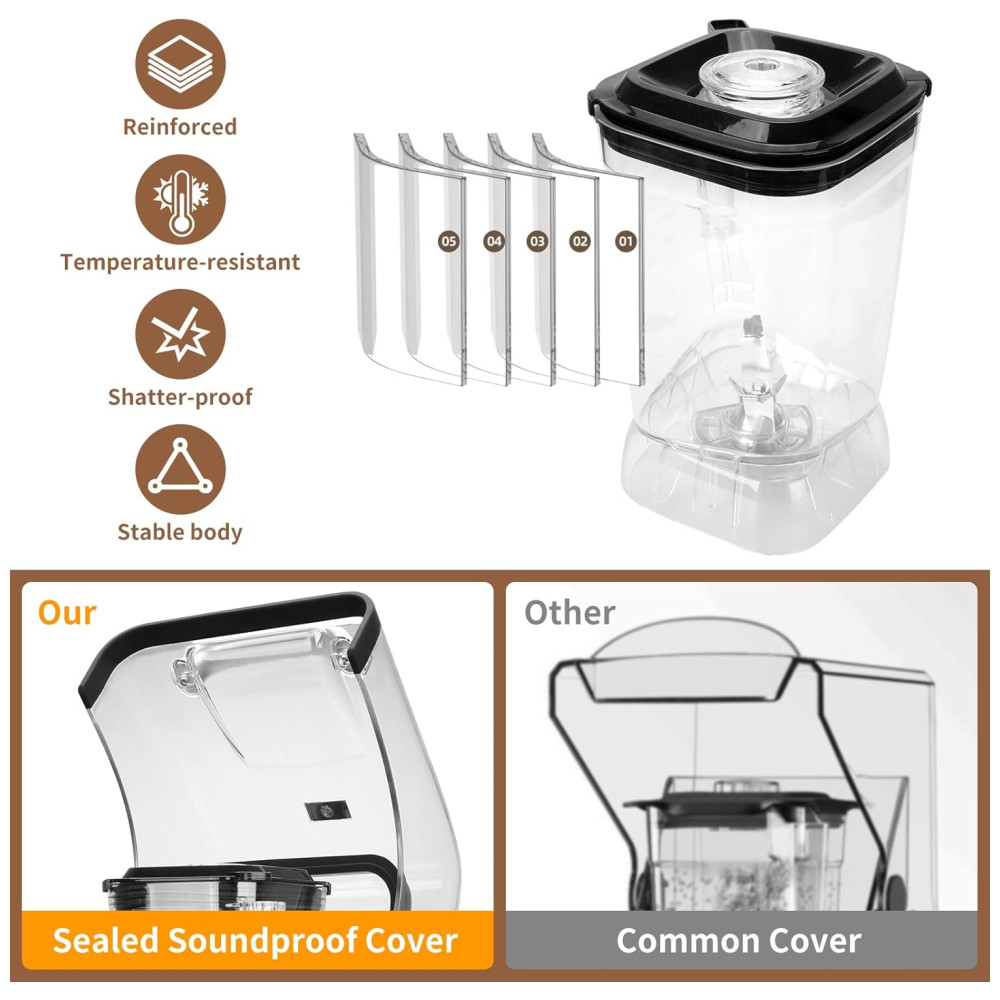 Liquidificador Comercial com Proteção à Prova de Som – Potente e Silencioso Autolimpante 2200WHijolla