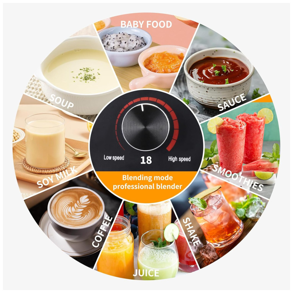 Desfrute de um ambiente tranquilo enquanto prepara suas receitas favoritas com o Liquidificador Comercial da marca Hijolla. Este liquidificador profissional possui uma capa de proteção à prova de som que reduz o ruído e evita respingos, permitindo misturar de forma silenciosa em casa ou em estabelecimentos comerciais. Com um potente motor de 2200W e 6 lâminas afiadas, é capaz de triturar ingredientes macios e duros em segundos. Além disso, a limpeza é fácil: basta adicionar um pouco de detergente e água morna, e o liquidificador se limpará sozinho em apenas 30 a 60 segundos. Controle a velocidade facilmente para obter diferentes texturas e aproveite a grande capacidade de 2 litros para preparar refeições em família sem preocupações.
