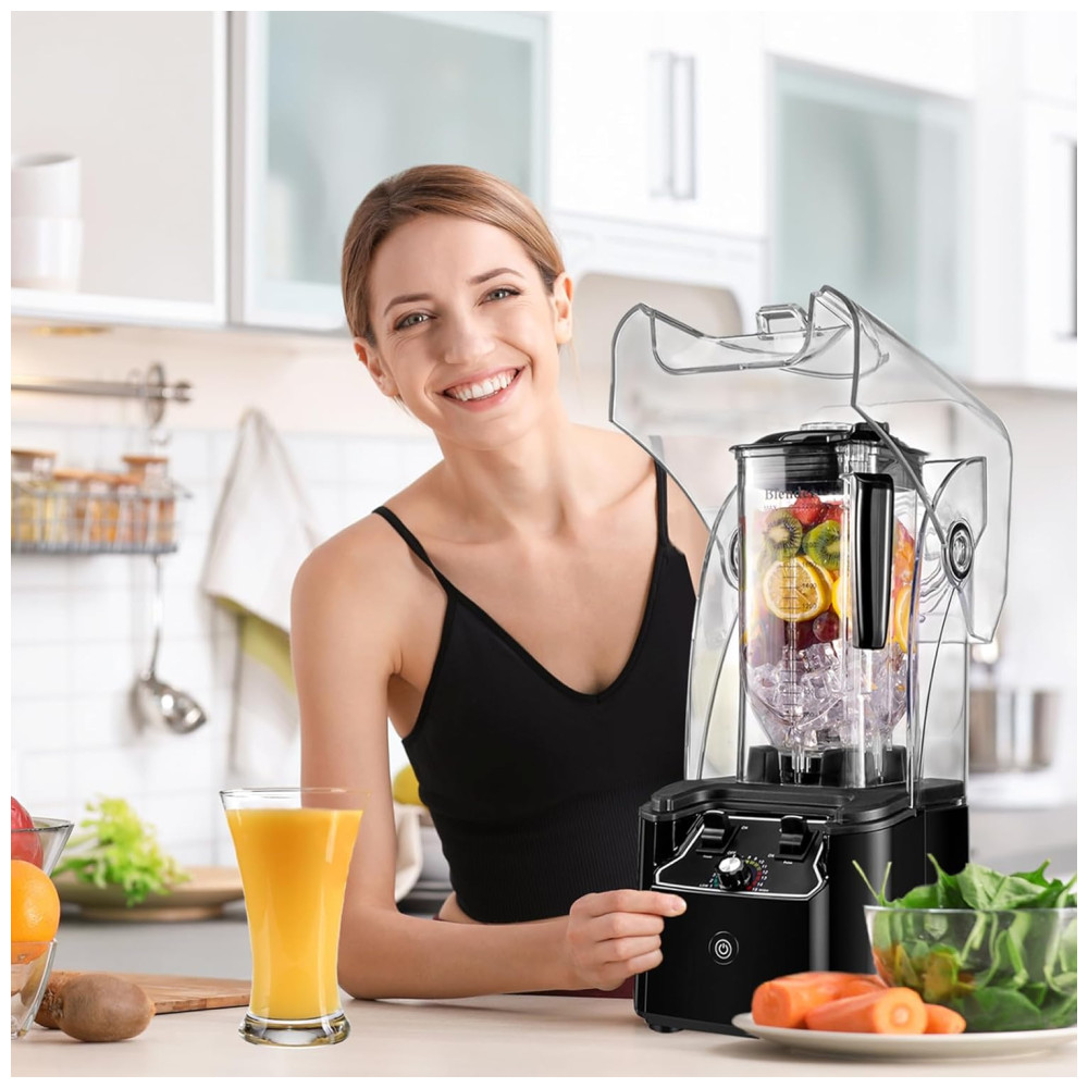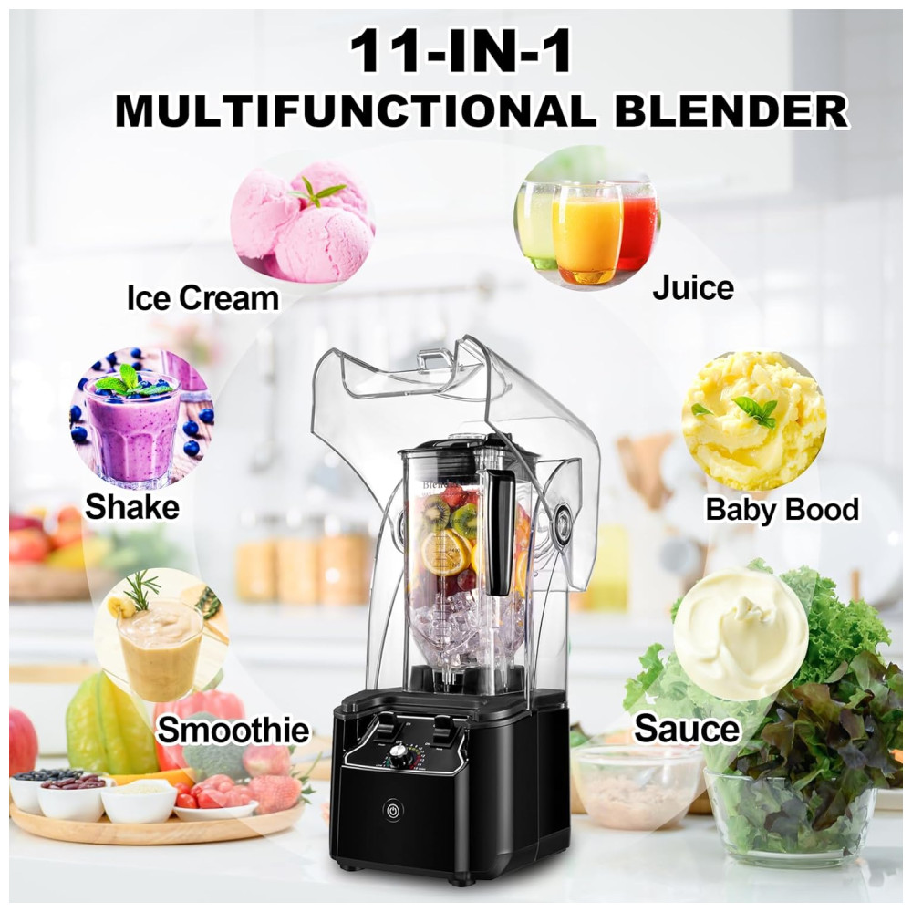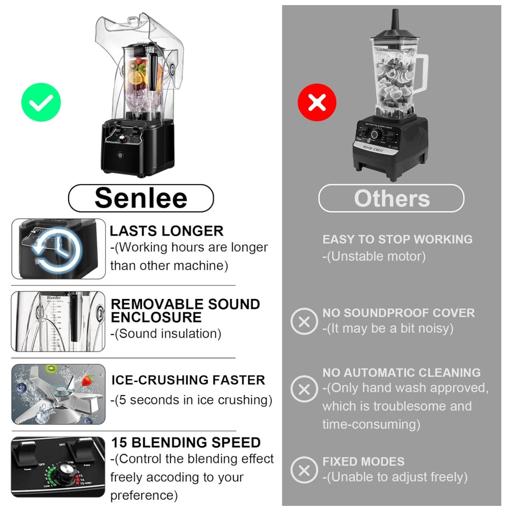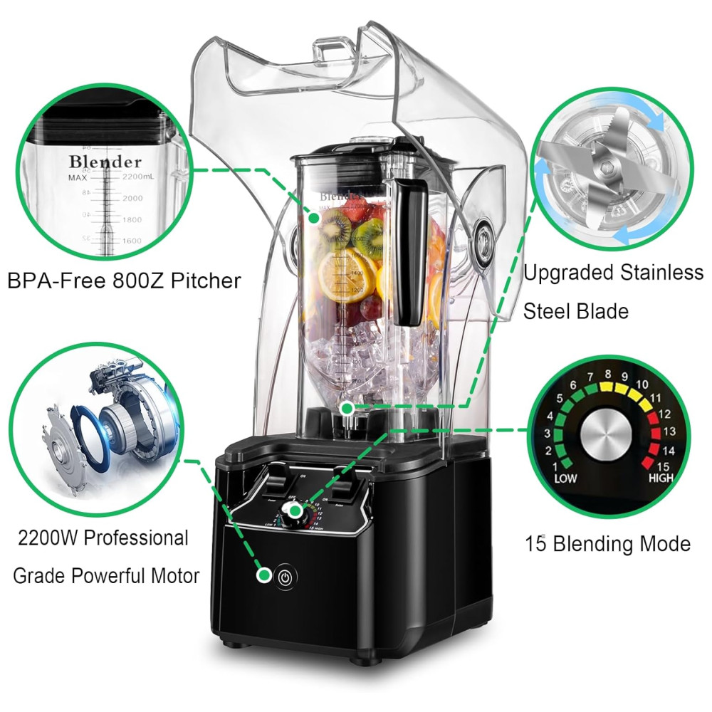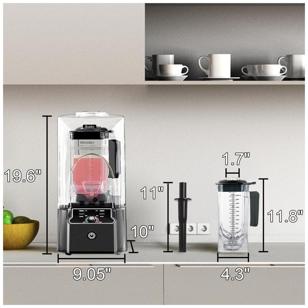 Liquidificador Comercial para Smoothies 2200W 2.2 Litros 15 Velocidades Lâmina de Aço Inoxidável de 6 Folhas Autolimpeza PretoSenlee
