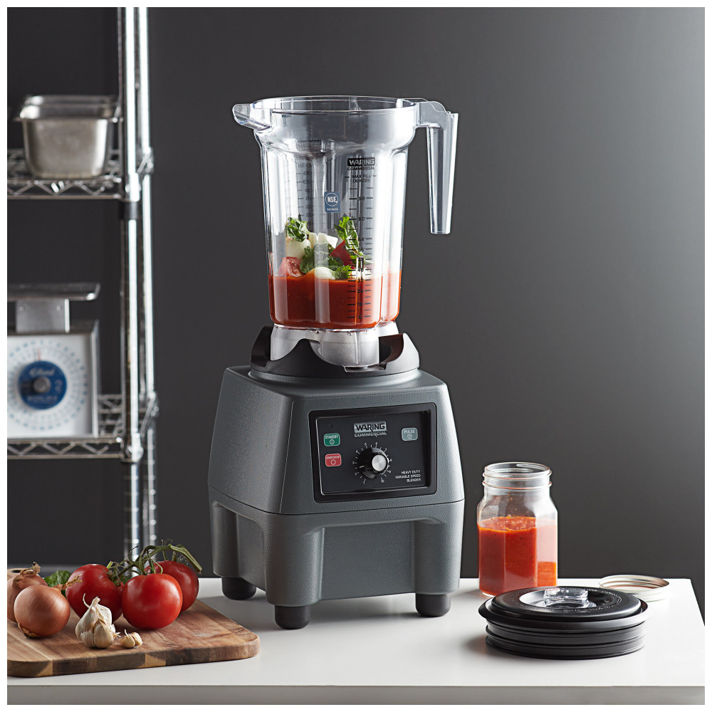O liquidificador de alimentos comercial Waring CB15VP de 3 3/4 hp é ideal para preparar mais de 100 bebidas ou porções por dia. Seu recipiente de copoliéster de 1 galão sem BPA é perfeito para grandes lotes de sopas, molhos, smoothies e muito mais! Com controle de velocidade variável, função de pulso e tampa emborrachada para misturas quentes ou frias, este liquidificador é projetado para durabilidade e conveniência. Com um motor potente, lâmina de aço inoxidável de alta performance e pés de borracha resistentes à vibração, é a escolha ideal para estabelecimentos comerciais.
