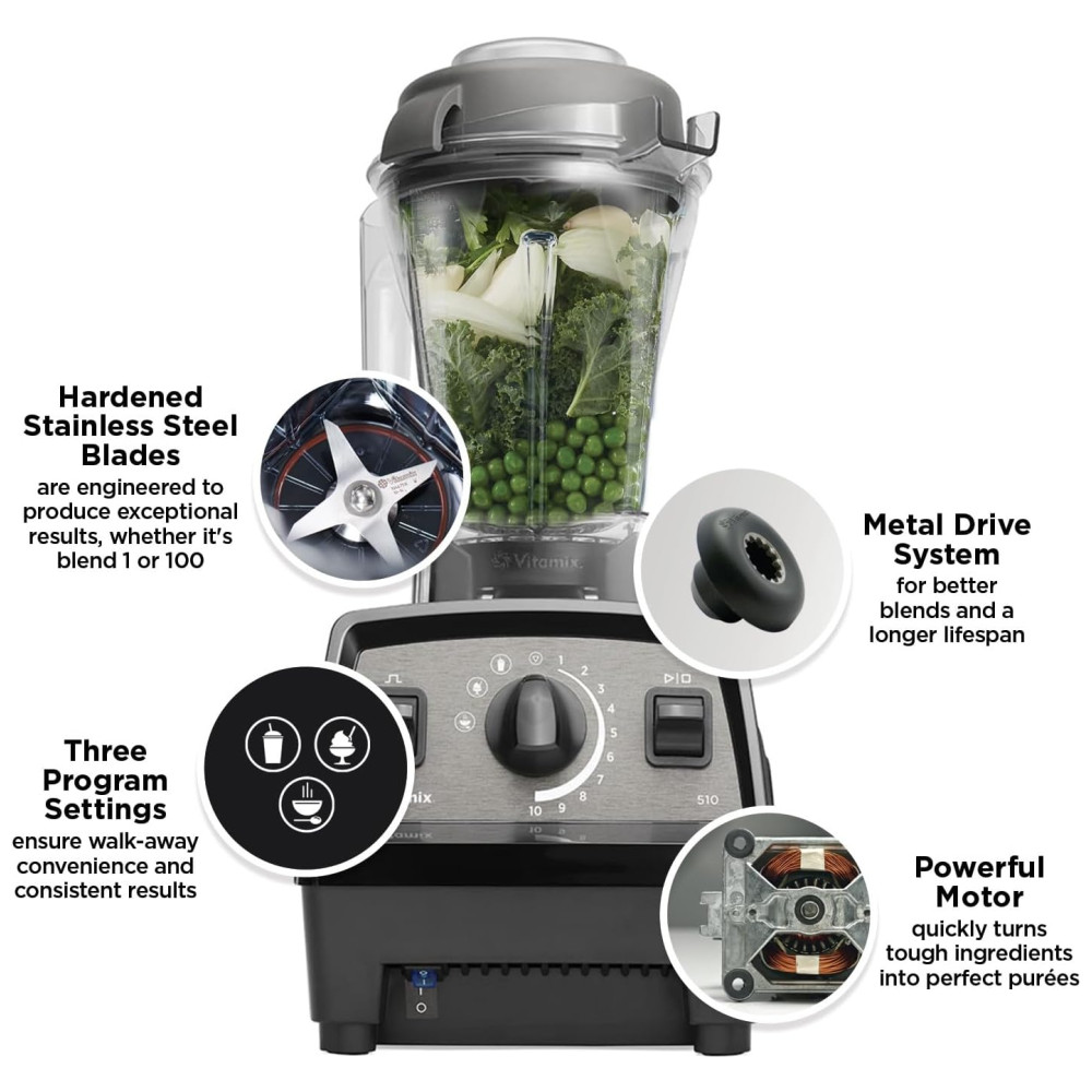 Liquidificador de Bancada 1.4L com 10 Velocidades e Desligamento Automático 110V 1380W Vitamix 510 Preto