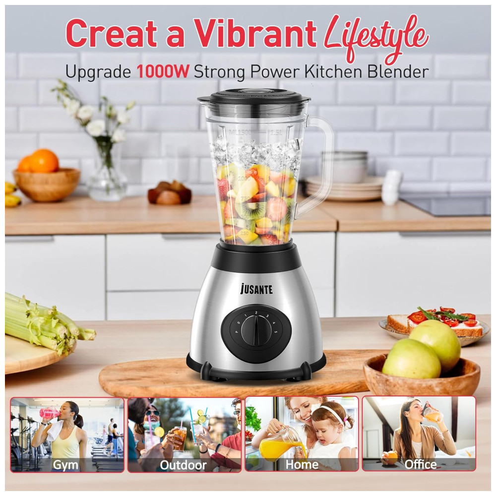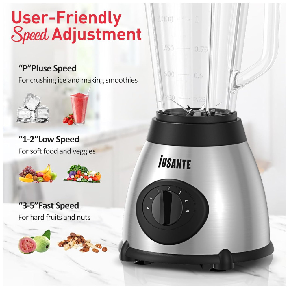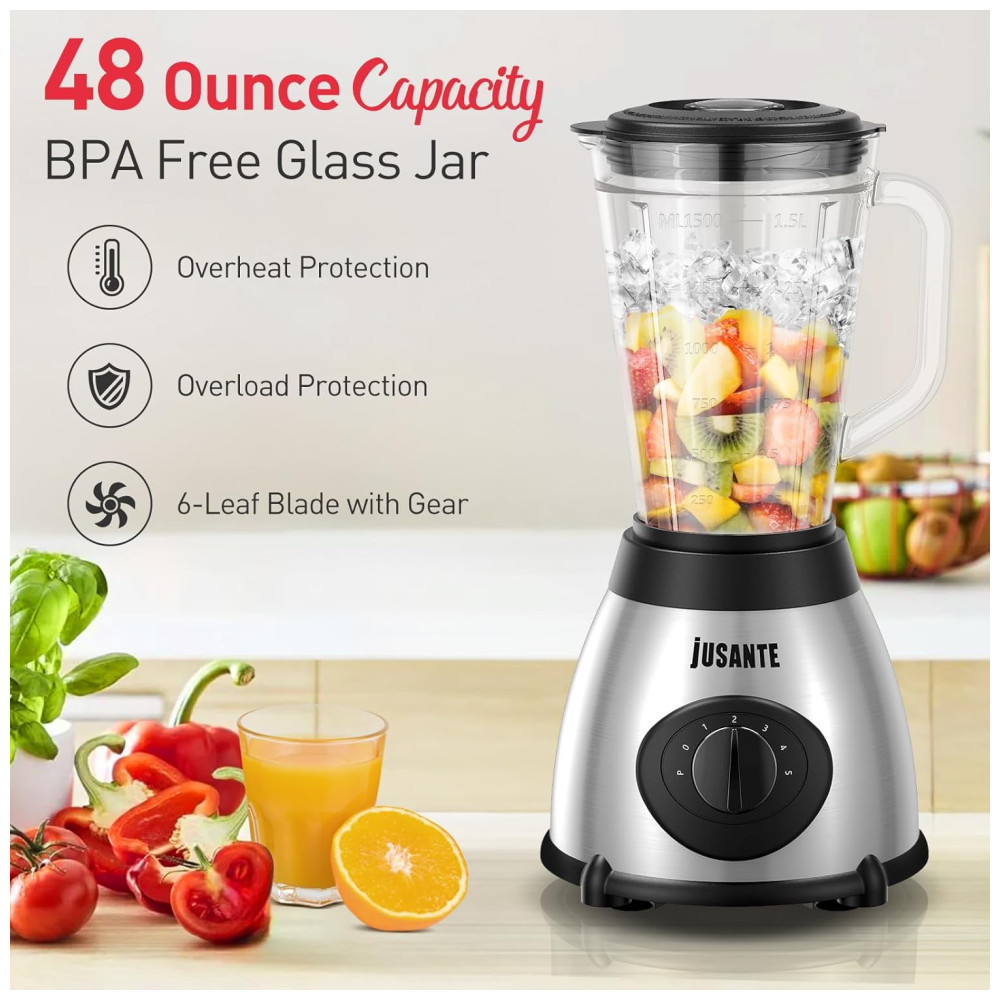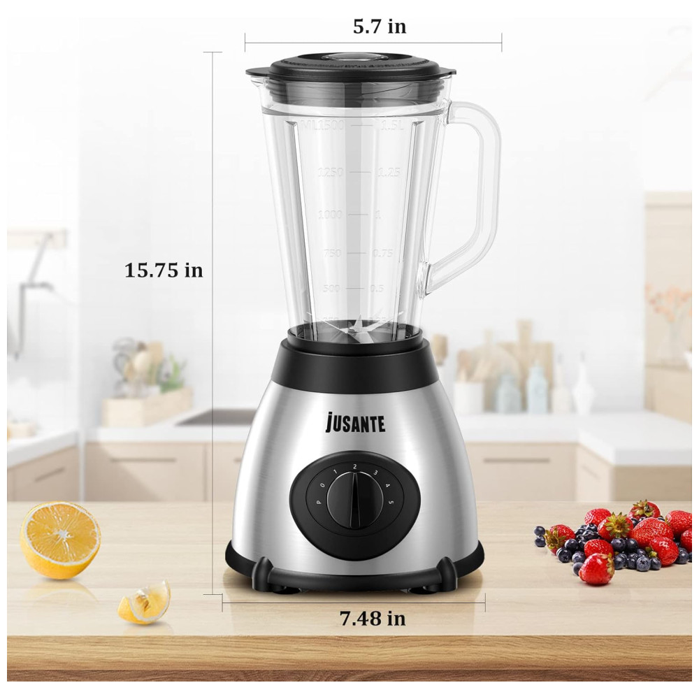 Liquidificador de Bancada 1.4L com 5 Velocidades e Jarra de Vidro 1000W 110V JUSANTE Prata