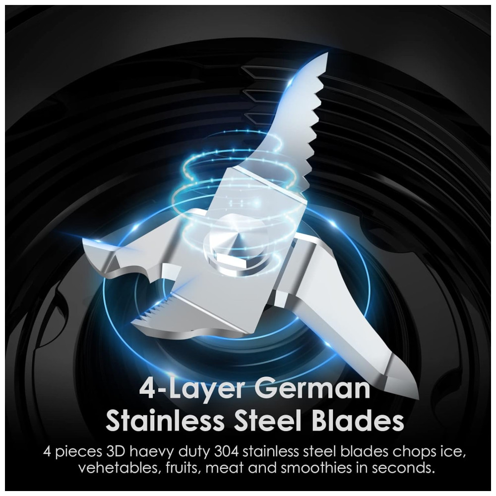 Tecnologia de Lâmina QuadPro com 4 Pontas: As 4 lâminas em aço inoxidável quebram as paredes celulares dos alimentos facilmente, liberando mais nutrientes em segundos. Este liquidificador atua como um espremedor, moedor de nozes e café, e máquina de smoothies de gelo para múltiplos usos.