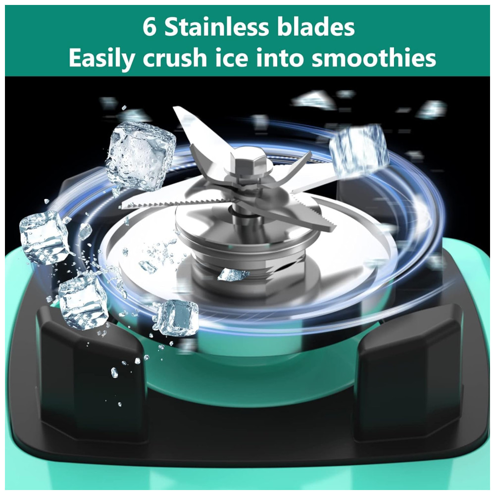 Lâminas de Aço Inoxidável para Triturar Gelo: Com lâminas de aço inoxidável 304 de qualidade alimentar e design de seis lâminas, pode triturar gelo com facilidade, sendo perfeito para criar smoothies gelados e bebidas congeladas.