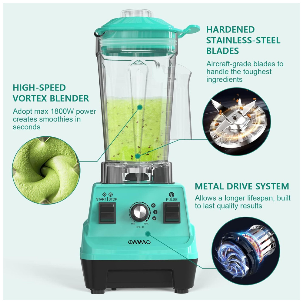 Potência Profissional: Este liquidificador possui um motor potente de 1800W que pode ajudar você a criar uma variedade de bebidas deliciosas. Seja para fazer shakes de proteína, smoothies ou coquetéis congelados, o Liquidificador OMMO está pronto para o desafio.