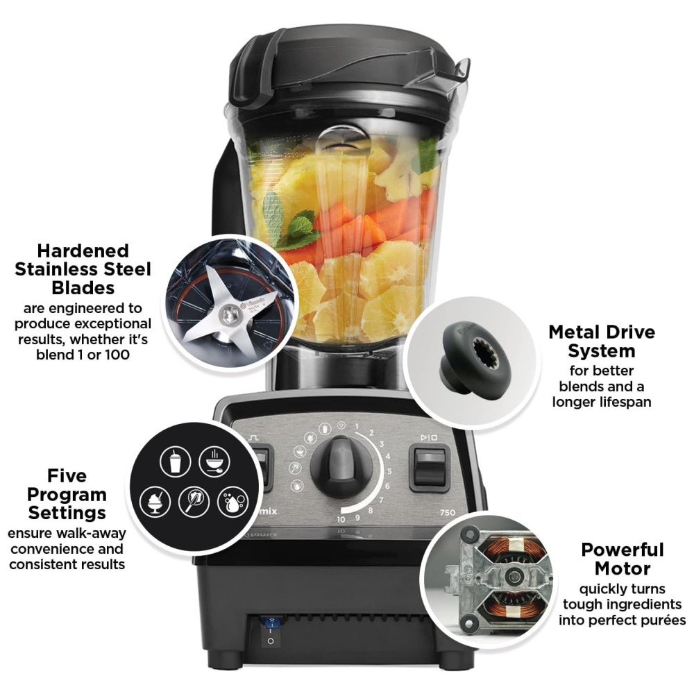 Perfeito para famílias e entusiastas da culinária, este liquidificador proporciona uma experiência culinária superior com cada preparo. Leve sua alimentação saudável e criativa a um novo patamar com o Vitamix Propel Series 750.