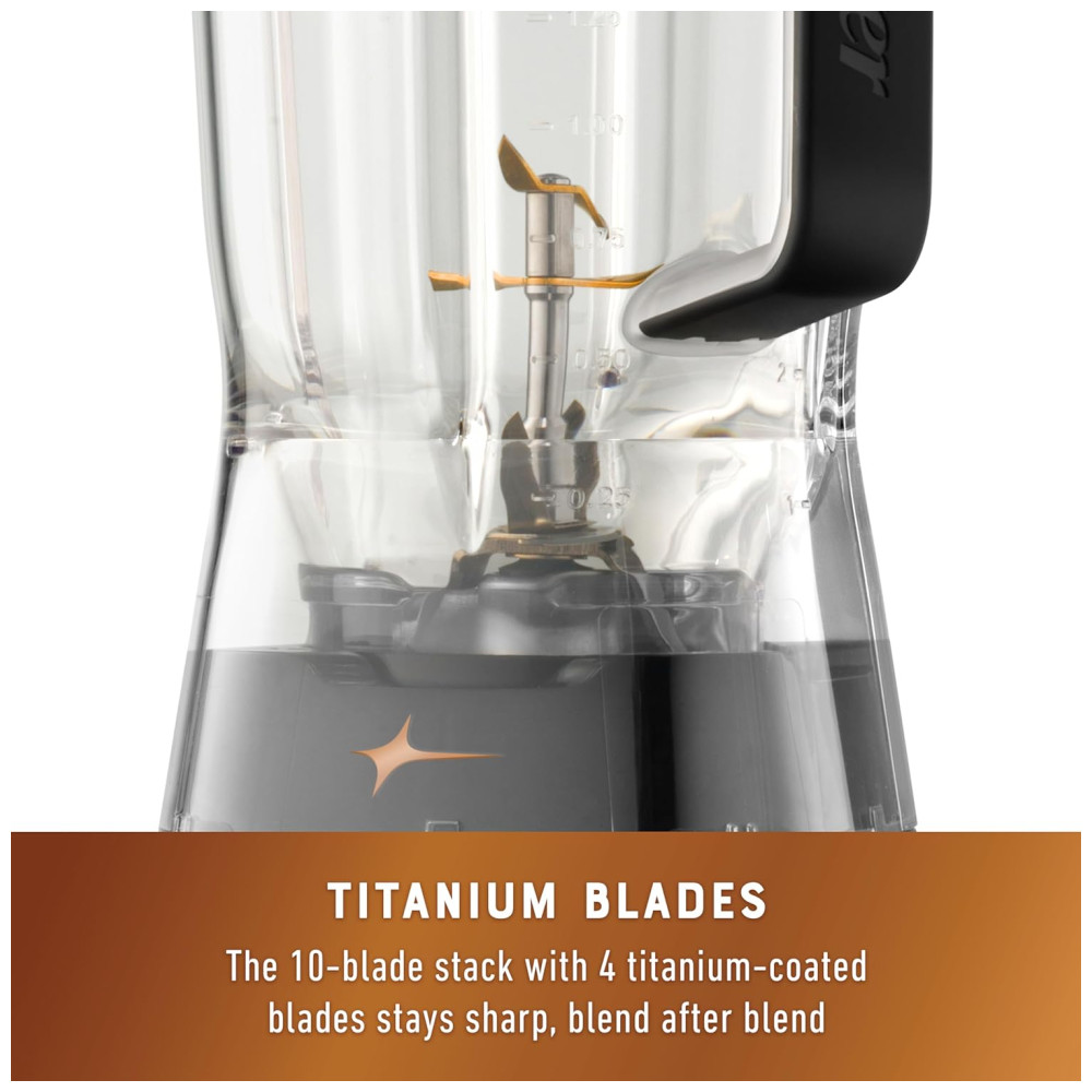 Lâminas Revestidas de Titânio: Equipado com quatro lâminas revestidas de titânio e um exclusivo conjunto de lâminas de 10 pontos, este liquidificador garante desempenho profissional e resultados perfeitos em cada mistura.