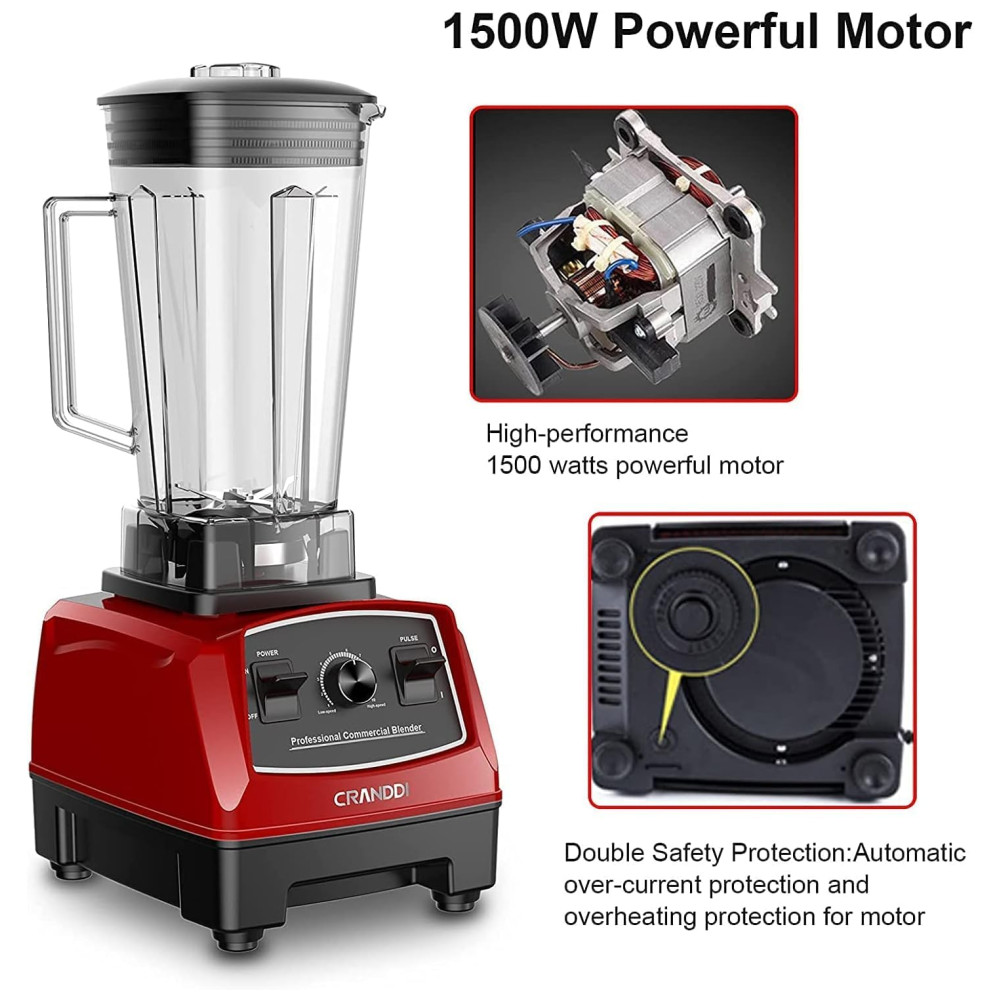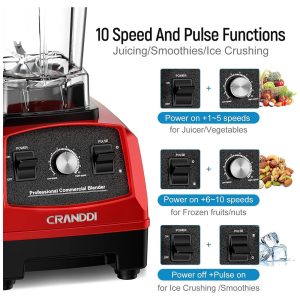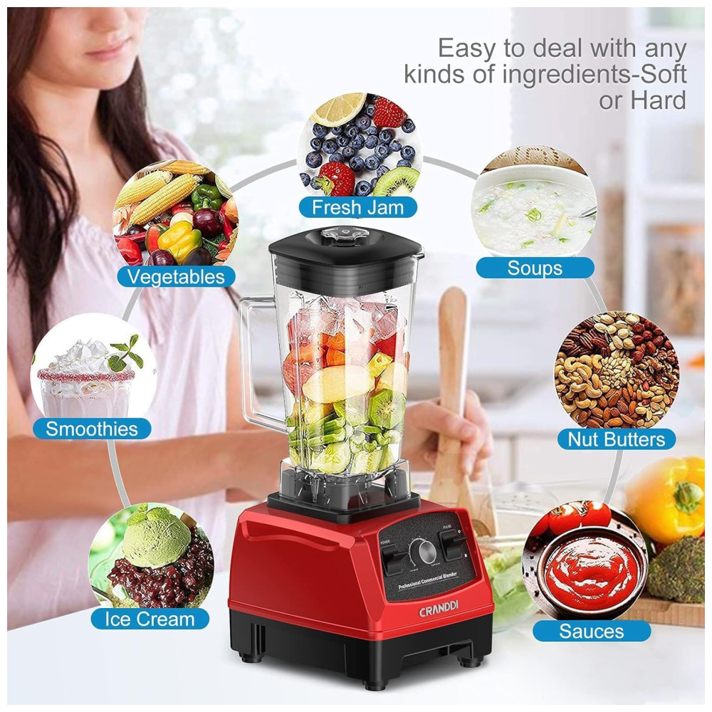 CAPACIDADE XL O liquidificador de bancada CRANDDI vem com jarro sem BPA, com capacidade de até 70 onças 2 litros. Liquidificador profissional da CRANDDI com design clássico em 2 cores de KETCHUP E BLACK PEARL que são adequados para consumidores de todas as idades.