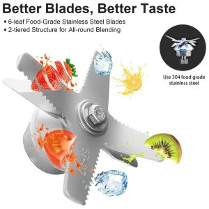 PODER PROFISSIONAL 1.500 watts de potência profissional podem quebrar o gelo e quebrar qualquer ingrediente difícil. Leva apenas 10 segundos para triturar o gelo. Você pode pegar seus smoothies