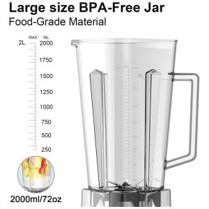 LIQUIDIFICADOR DE BANCADA O liquidificador de bancada CRANDDI vem com uma grande capacidade de jarro de 70 onças 2L, 8 xícaras sem BPA para 4 6 pessoas. É perfeito para fazer grandes lotes de bebidas cremosas e congeladas, comida para bebês, shakes e smoothies para toda a família, uso ou liquidificador pessoal.