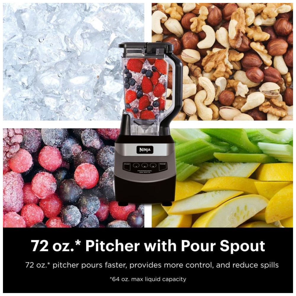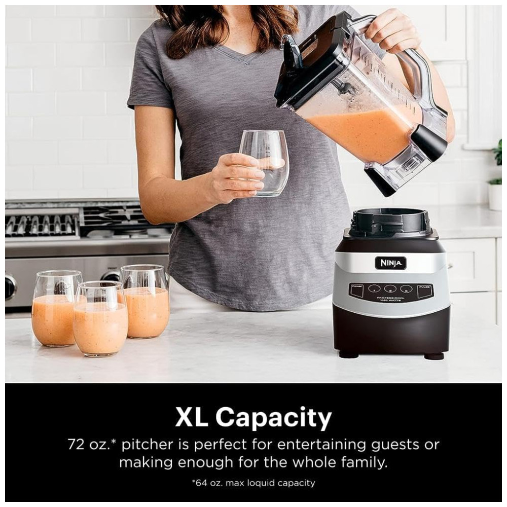 Conheça o Liquidificador Profissional Ninja NJ601AMZ com Motor de 1000 Watts, projetado para oferecer alto desempenho em suas receitas favoritas. Com uma capacidade de mistura extra grande de (aproximadamente 2,1 litros), este liquidificador é perfeito para preparar grandes lotes para toda a família, com capacidade máxima de líquido de (aproximadamente 1,9 litros).
