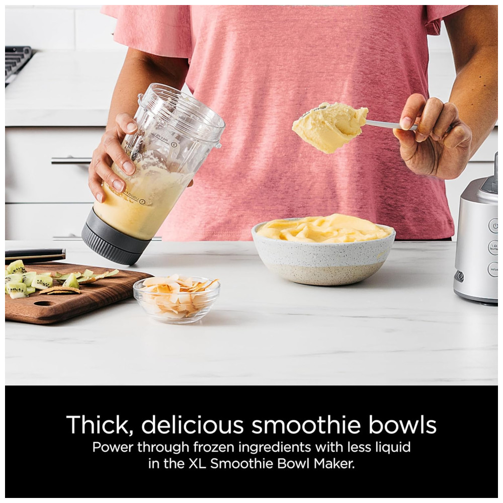 CRIADOR DE SMOOTHIE BOWL XL: Com pilão embutido especialmente projetado para passar por ingredientes congelados usando menos líquido para bowls de smoothie ou nozes e sementes para pastas de nozes.