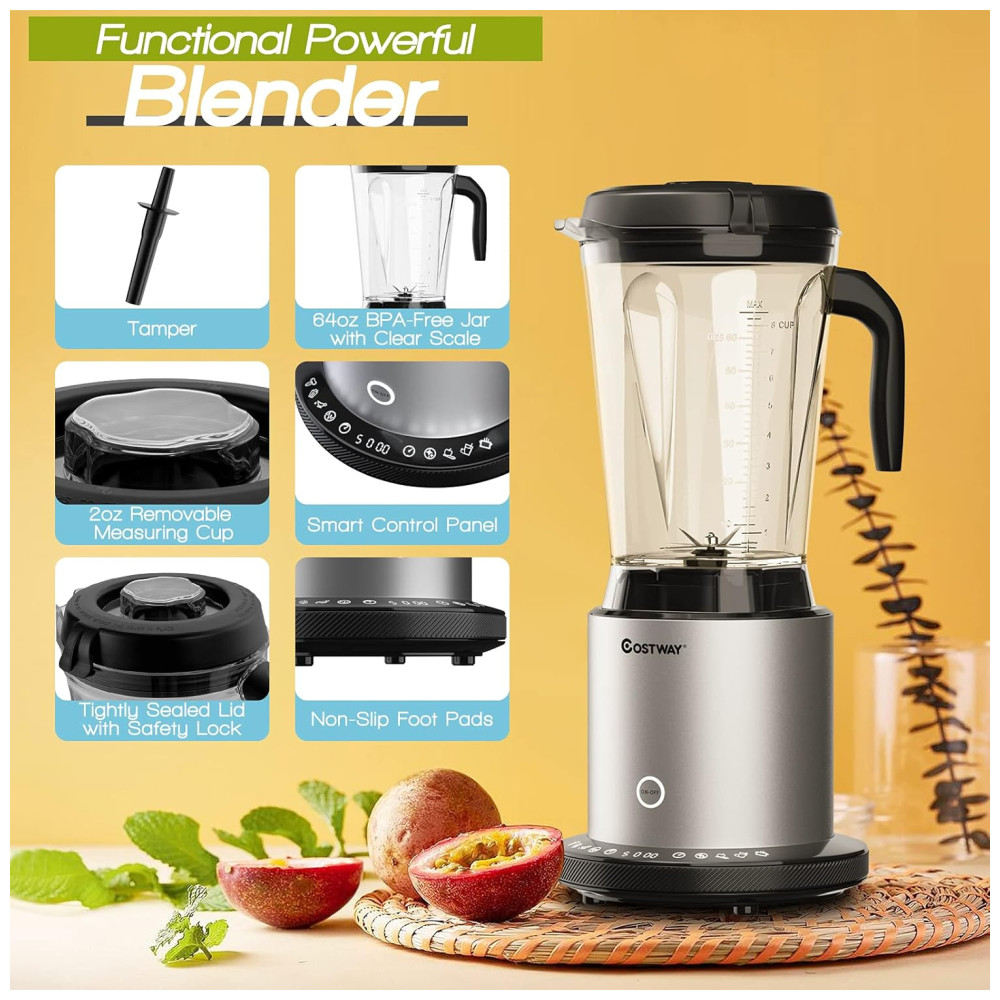 Liquidificador de Bancada 2L com 10 Velocidades 1500W 110v COSTWAY Prateado