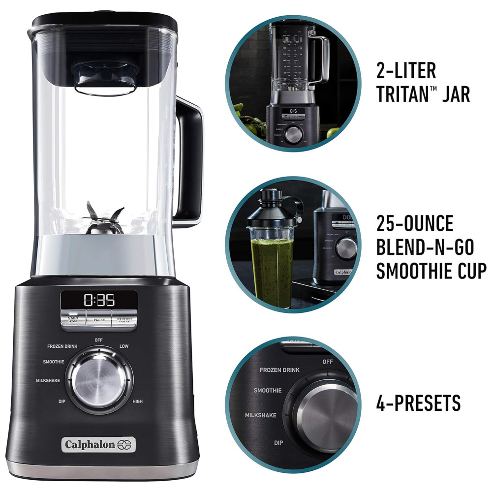 Liquidificador de Bancada 2L com 10 Velocidades e 4 Predefinições 1100W 110v CALPHALON BLCLMB1 Cinza
