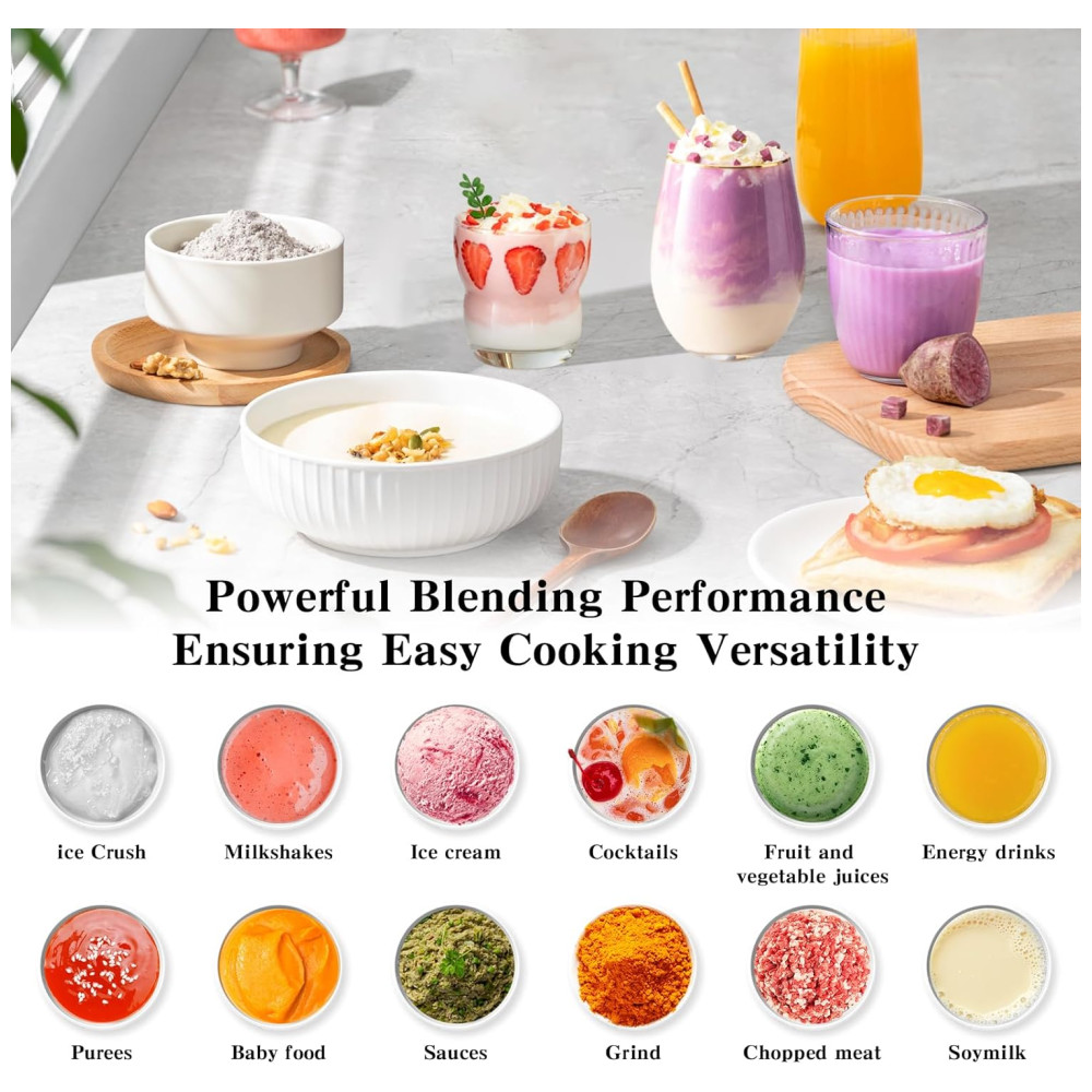 Liquidificador Inteligente e Multifuncional: Este liquidificador de cozinha pode ser utilizado não apenas como um espremedor, mas também como um fabricante de smoothies, moedor de carnes e triturador de gelo. Você pode picar cubos de gelo, moer nozes, grãos, grãos de café, fazer smoothies e batidas de forma rápida e uniforme em segundos. Para ingredientes alimentares duros, este novo liquidificador com quebra de parede pode identificar inteligentemente a dureza dos ingredientes em diferentes estágios de mistura e distribuir inteligentemente a velocidade de cada estágio de agitação.