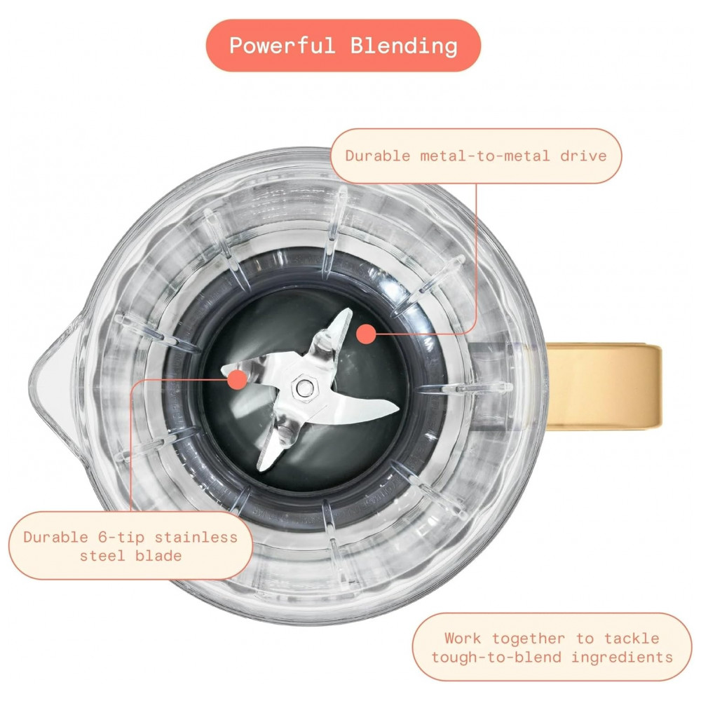 O liquidificador de bancada Beautiful PowerExact Branco foi desenvolvido para preparo de bebidas, sopas e misturas culinárias em uso residencial, combinando motor de 700W com jarra em Tritan livre de BPA e copo individual para porções únicas. A jarra principal de aproximadamente 1,47 litros atende preparos em maior volume, enquanto o copo de 590ml permite bater e consumir diretamente por meio da tampa exclusiva No Drippy Sippy, adequada para uso fora de casa.
