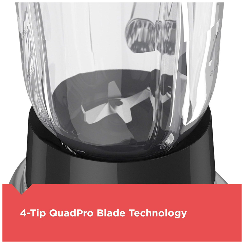 Tecnologia de Lâmina QuadPro de 4 Pontas: A lâmina de mistura de aço inoxidável de 4 pontas trabalha com a forma da jarra para criar um fluxo constante e um vórtice que direciona os ingredientes diretamente para as lâminas para um desempenho de mistura rápida.