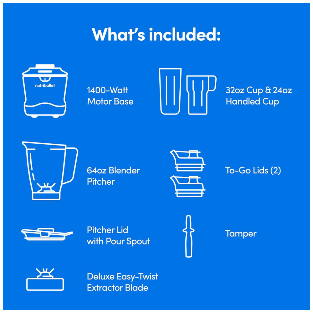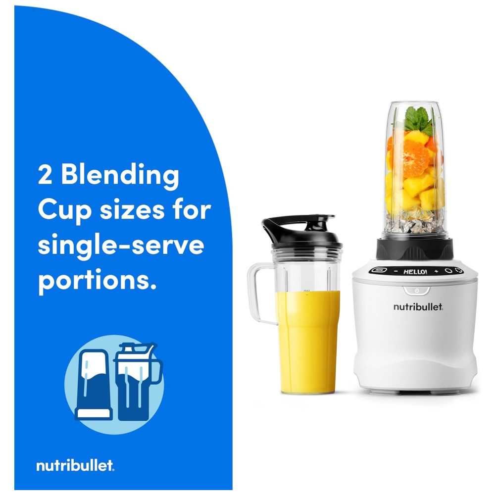 Com um design elegante e discreto, o Nutribullet SmartSense Blender Combo combina perfeitamente com qualquer estilo de cozinha. O produto inclui: 1 base, 2 tamanhos de jarros de liquidificador (2,26 litros e 0,85 litros), copos de 0,85 e 1,13 litros, lâmina extratora deluxe EasyTwist, copo , 2 tampas Go, tampador, livro de receitas e guia do usuário.