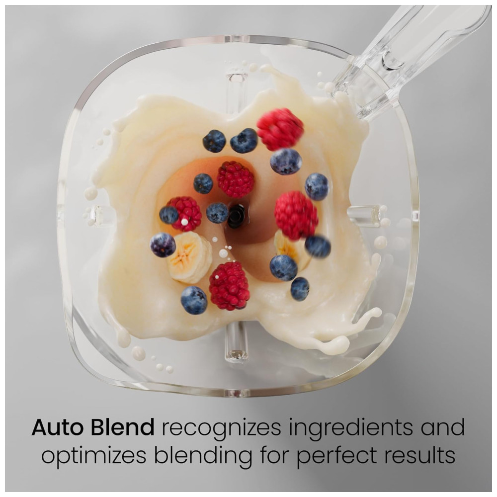Com a função Auto Blend, o liquidificador analisa os ingredientes adicionados e ajusta automaticamente a velocidade e o tempo de mistura para alcançar a consistência ideal. O painel de controle com botão de dial inclui 5 velocidades ajustáveis e uma opção de pulso, oferecendo total controle sobre o processo de mistura. As predefinições incluem um cronômetro de contagem regressiva e alertas em LED que indicam quando é necessário ajustar a tampa ou adicionar mais líquido.