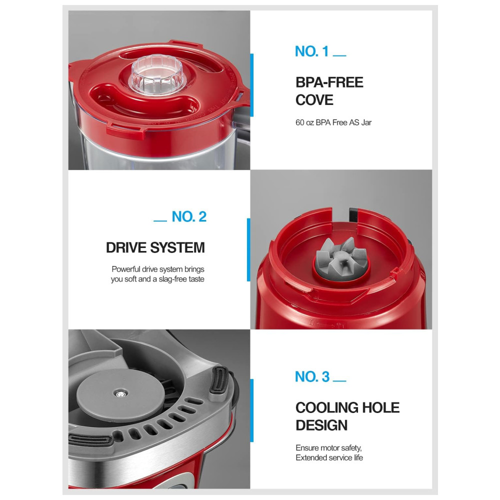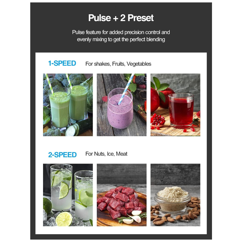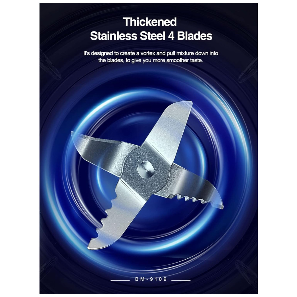 Desempenho de alta velocidade Com motor potente e 4 lâminas de aço inoxidável, a velocidade deste liquidificador de bancada pode ser de até 35.000 RPM, que pode misturar ingredientes para uma consistência suave em segundos, tornando o perfeito para shakes, smoothies e outras bebidas misturadas.