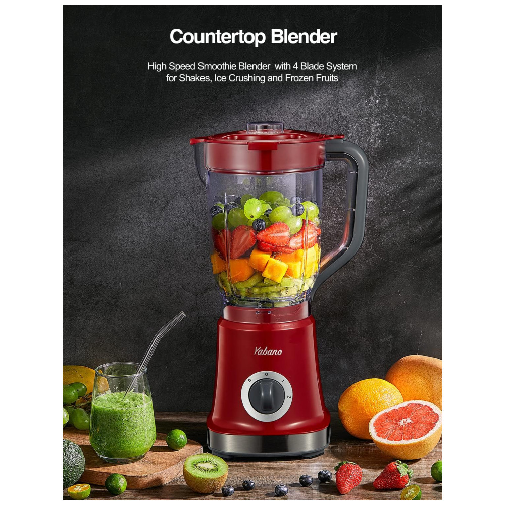 Liquidificador de Bancada Profissional 1.8L com 4 Lâminas de Aço Inoxidável 110V 500W Yabano Vermelho