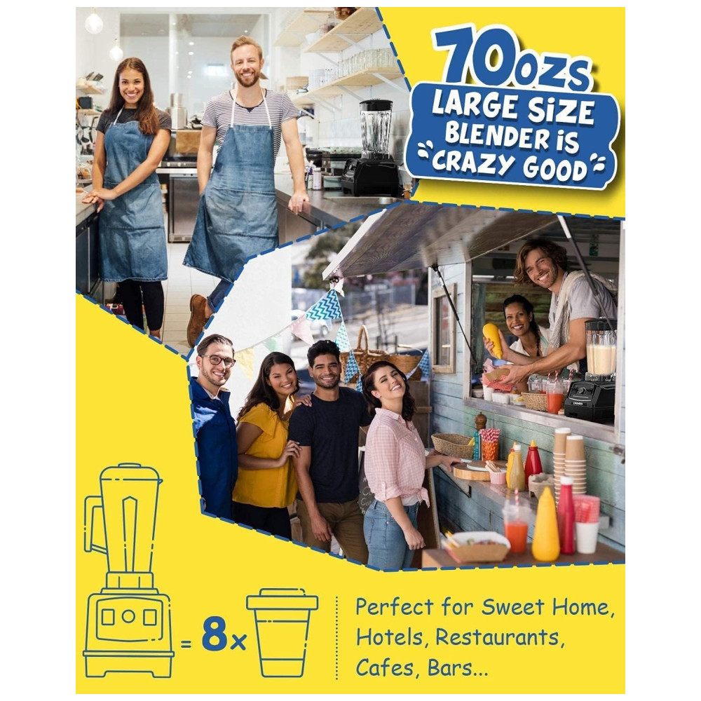 O liquidificador de bancada CRANDDI tem grande capacidade de 70 oz 2 litros, 8 xícaras para 5 6 pessoas, projetado especificamente para misturar grandes quantidades de smoothies, shakes ou outras bebidas.