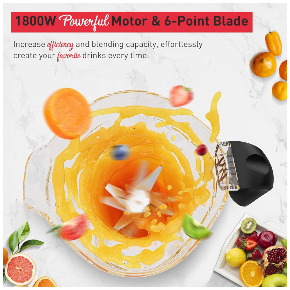 As lâminas afiadas de 6 folhas são projetadas para triturar facilmente gelo, frutas e vegetais, resultando em smoothies e sucos cremosos e suaves. Além disso, sua versatilidade permite fazer sopas, molhos e até manteiga de amendoim.