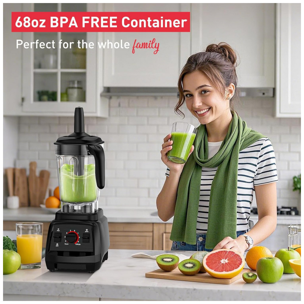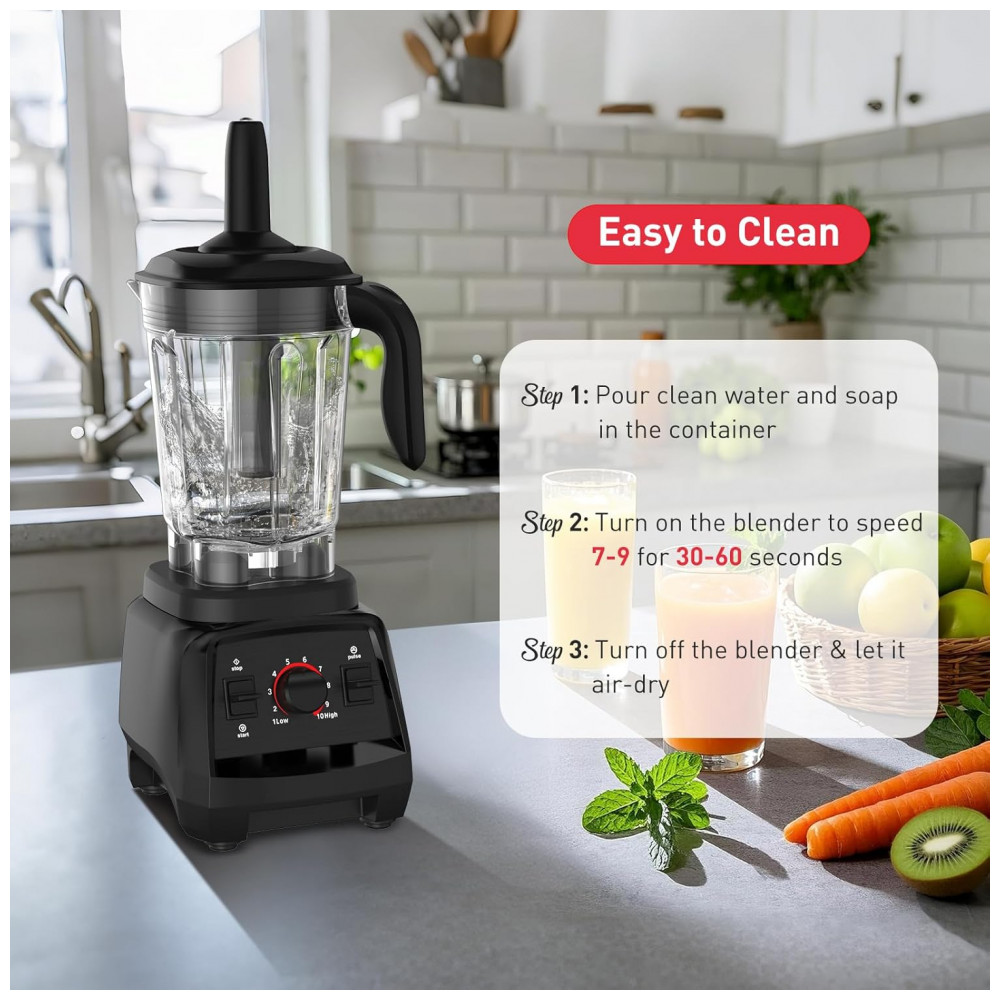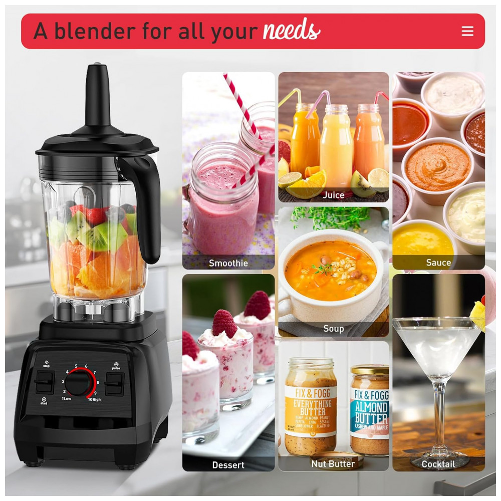Liquidificador de Bancada Profissional 2L com 10 Velocidades para Smoothies e Receitas de Cozinha 110V 1800W JUSANTE Preto