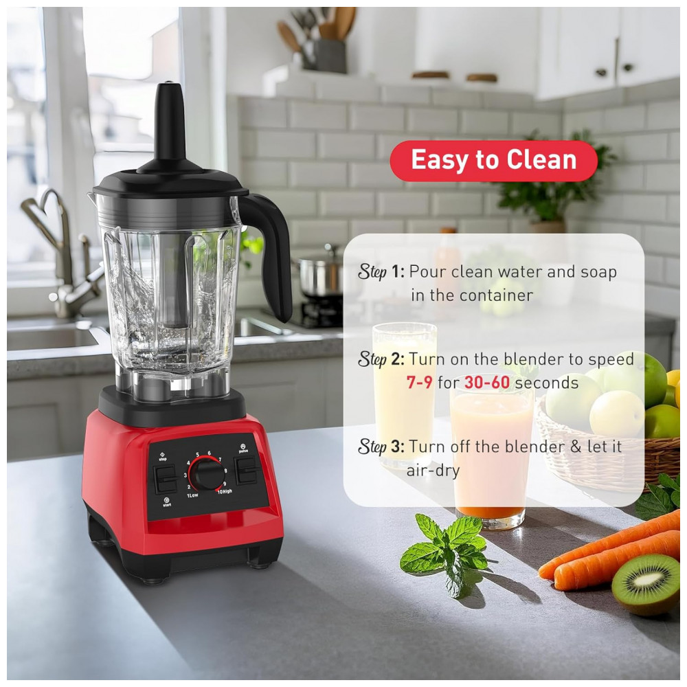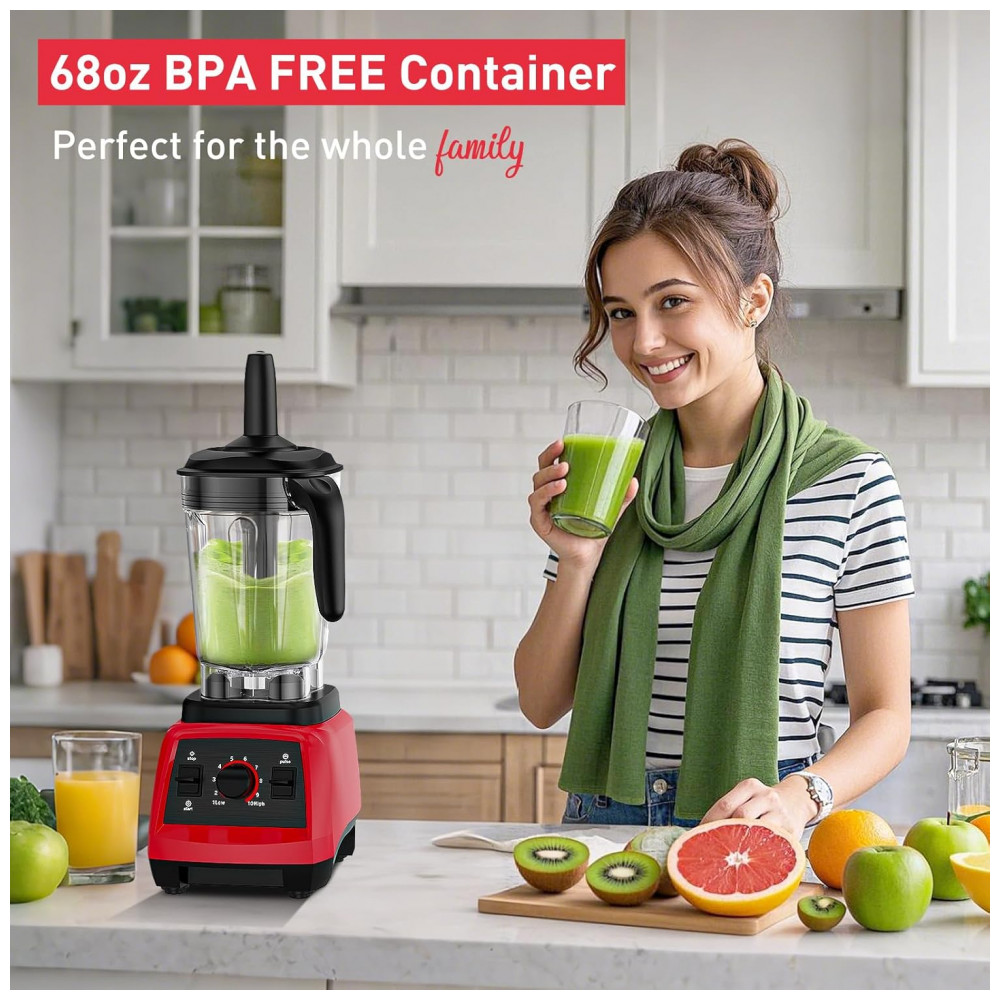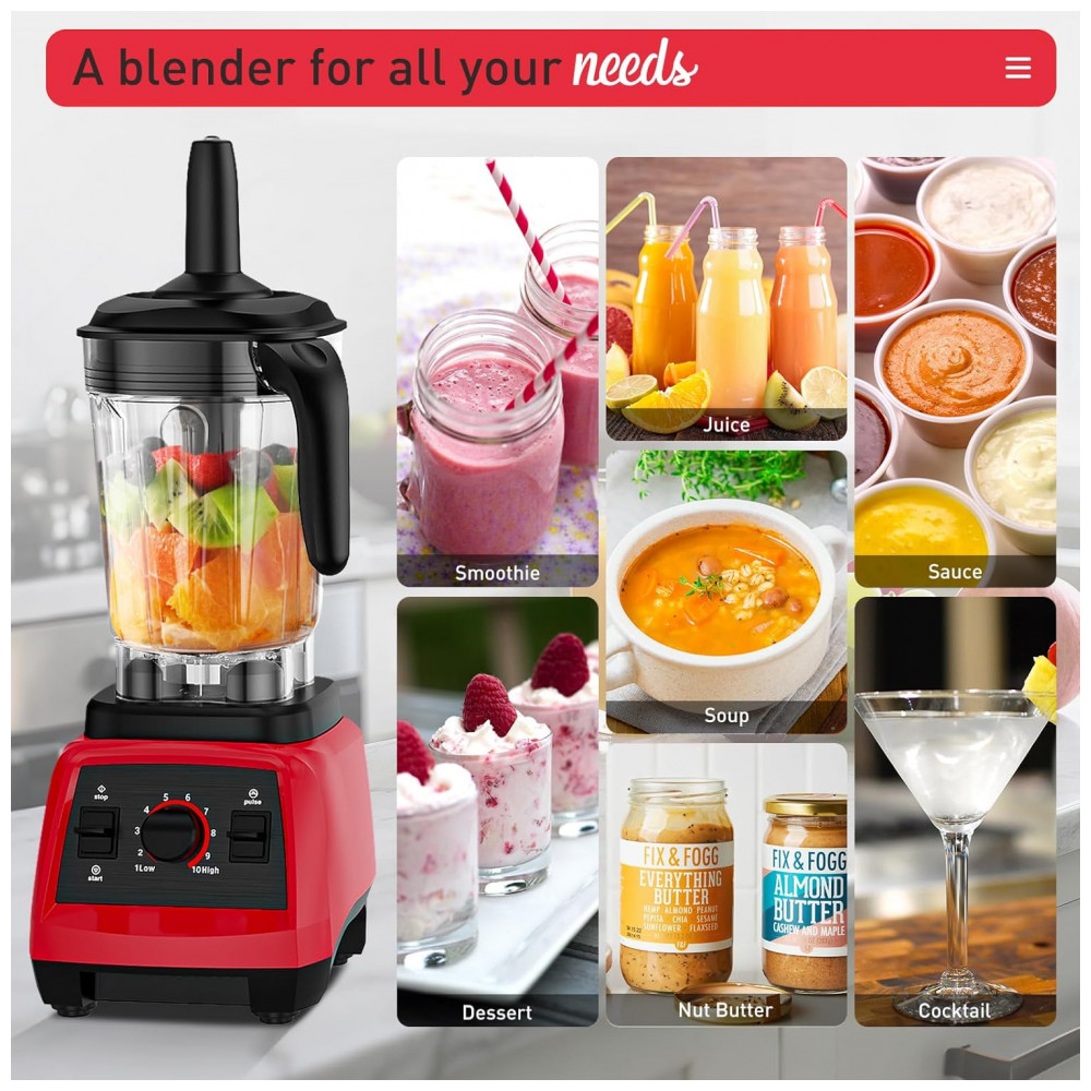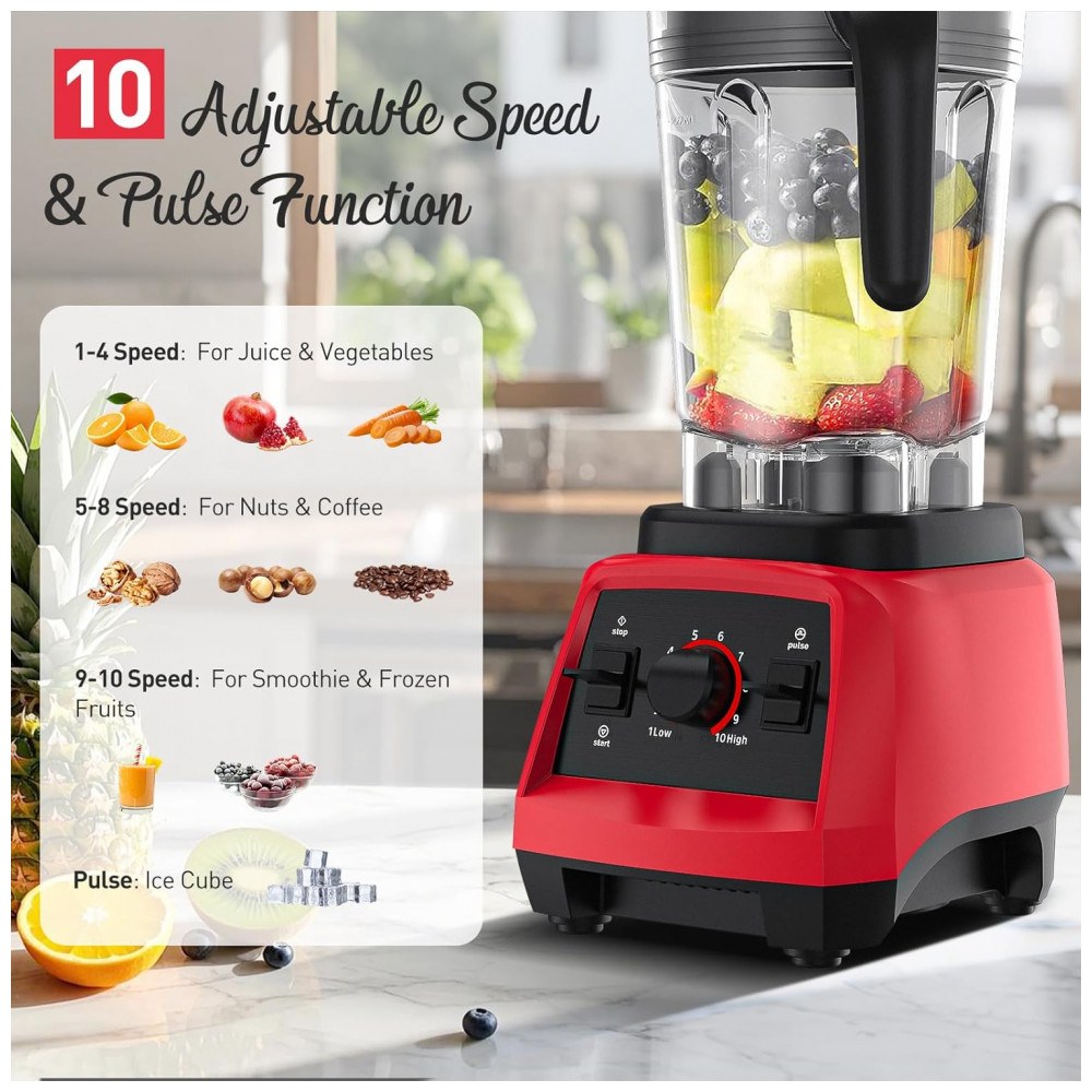 Liquidificador de Bancada Profissional 2L com 10 Velocidades para Smoothies e Receitas de Cozinha 110V 1800W JUSANTE Vermelho