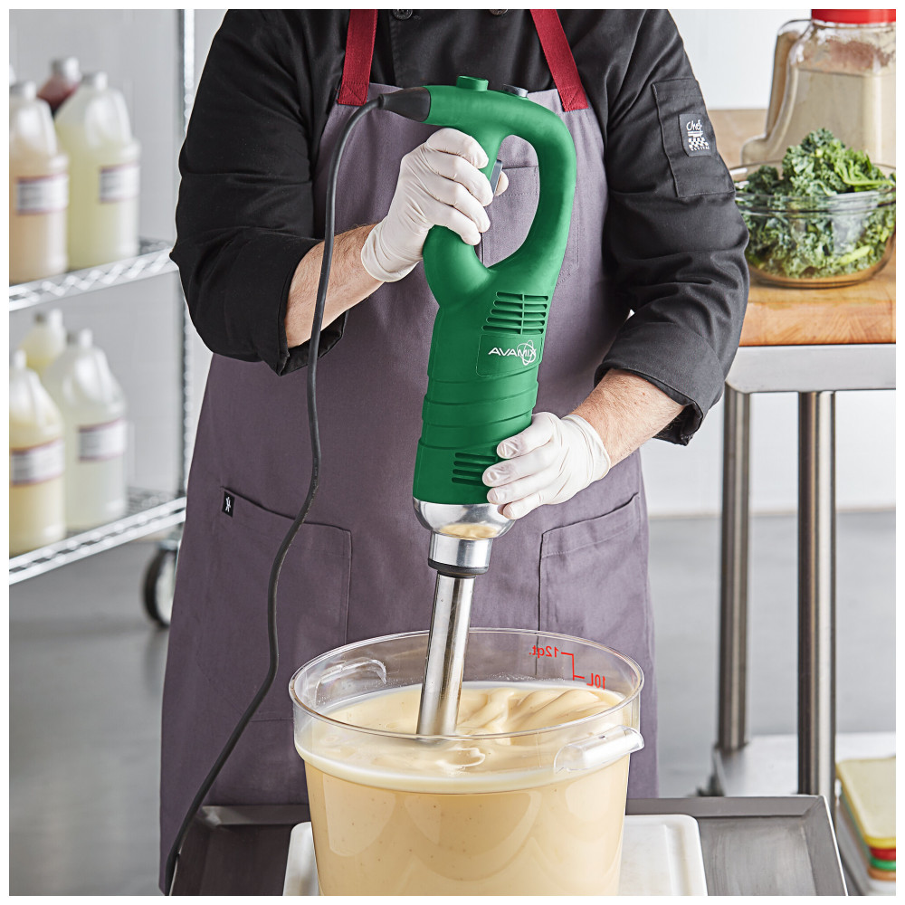 O misturador de imersão de uso médio AvaMix IBMD16 16 é a ferramenta versátil que toda cozinha comercial precisa. Com eixo de mistura de aço inoxidável removível facilmente, velocidade variável de 4000 a 16.000 RPM e motor de 0,76 cv, este misturador oferece potência superior para misturar até 79,5 litros de produto. Com lâminas afiadas, pode triturar, picar e purê alimentos com facilidade. Possui botão de trava para operação contínua sem as mãos, permitindo ajuste de velocidade conveniente e seguro. Fácil de limpar e trocar os acessórios. Requer conexão elétrica de 110V.