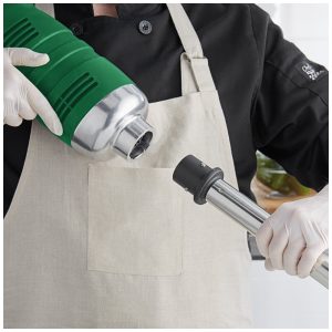 Faça rapidamente tarefas de picar, misturar ou liquidificar diretamente na tigela com este liquidificador de imersão heavyduty de velocidade variável! Com um eixo de mistura de aço inoxidável de 35,56 cm facilmente removível, velocidade variável de 8000 a 18000 RPM para triturar, bater e emulsionar até 79 litros. Seu poderoso motor de 1,27 cv oferece excelente potência de mistura. Aceita hastes AvaMix 1021 e acessório de 10 batedores. Inclui botão de bloqueio para operação contínua sem as mãos. Apenas o liquidificador possui a certificação ETL. Este liquidificador resistente é uma ferramenta versátil indispensável em qualquer cozinha comercial, com ventiladores de resfriamento que garantem durabilidade, mesmo em cozinhas industriais agitadas. Além disso, acompanha um acessório de 10 batedores perfeito para misturar sopas, molhos, purês e mousses. Ajuste a velocidade com facilidade, misturando, batendo e triturando alimentos sem esforço. Compatível com conexão elétrica de 110V, cabo de energia longo e capacidade para até 68 litros.
