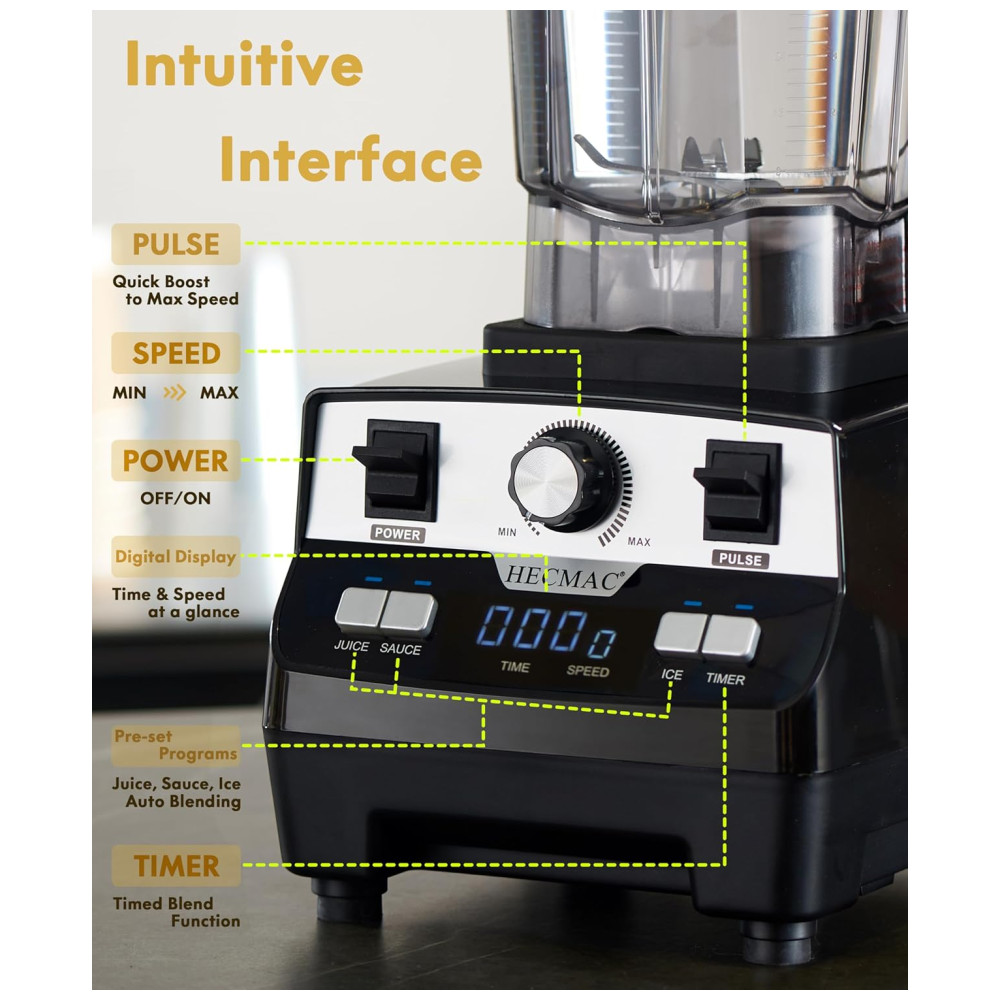 Liquidificador de Nível Profissinal 24L com 3 Programas para Uso Doméstico e Comercial 110V 2200W HECMAC Preto
