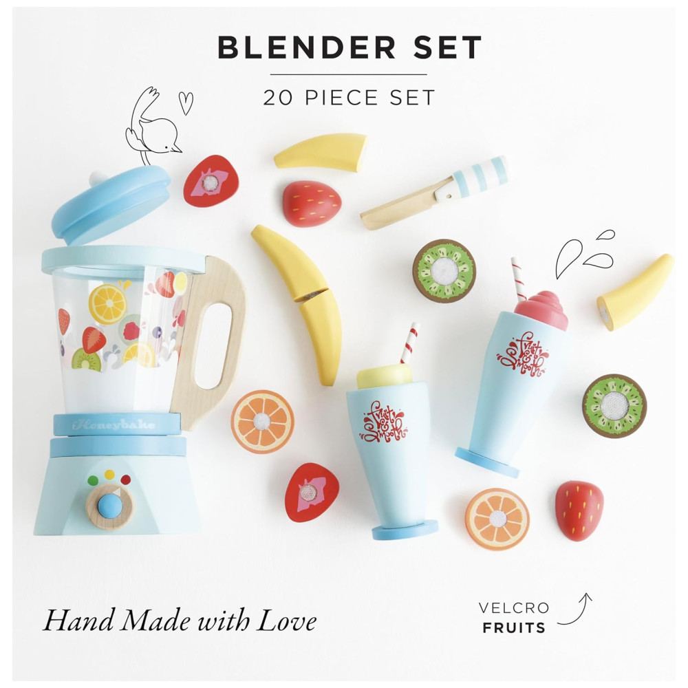 O conjunto Blender Set durável desenvolve e incentiva seu filho a aprender habilidades de revezamento, bem como interação social. Feito de madeira de seringueira durável e sustentável, permite diversão duradoura, ao mesmo tempo em que cuida do nosso planeta. Este conjunto de brinquedos de madeira é um verdadeiro investimento em brincadeiras para as gerações futuras.