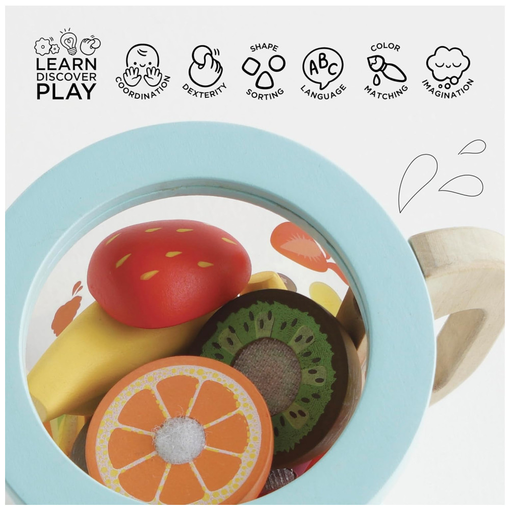 Liquidificador e Conjunto de Frutas de Madeira Premium Brinquedos Educativos para Crianças a Partir de 3 Anos Le Toy Van Colorido