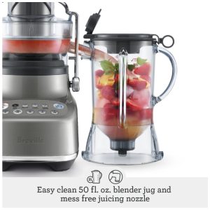 TEMPO DE PREPARO REDUZIDO: O Breville 3X Bluicer apresenta um bocal de alimentação de 8,89 cm, permitindo que você esprema frutas e vegetais inteiros sem precisar pré-cortá-los. Esprema diretamente no jarro ou use o acessório de bico de suco para espremer sem bagunça diretamente em um copo.