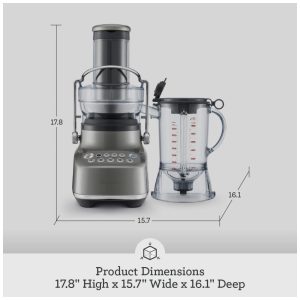 O Breville 3X Bluicer é um liquidificador e espremedor em um só aparelho. Com um bocal largo de 8,89 cm, Tecnologia Cold Spin, 4 programas com um toque e 5 configurações de velocidade, você pode extrair suco fresco diretamente em um jarro de 1478 ml e criar smoothies, coquetéis e muito mais.