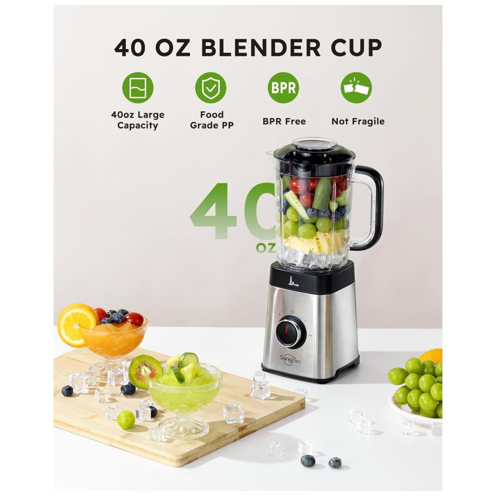 Recursos de Segurança Aprimorados: Nosso liquidificador de bancada prioriza a segurança com seus materiais de qualidade alimentar, garantindo que sua comida permaneça livre de contaminação. As lâminas de aço inoxidável oferecem desempenho duradouro e resultados excepcionais. Com proteção contra superaquecimento e base de ventosas para estabilidade, nosso liquidificador garante operação segura e confiável.