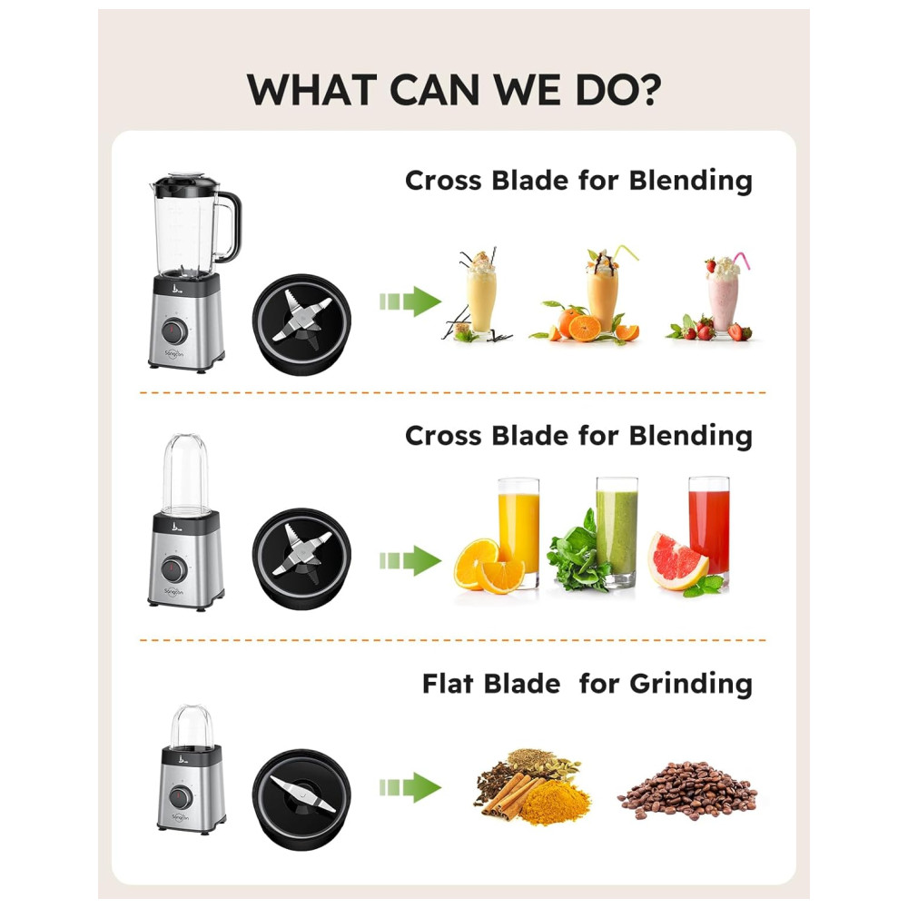 3 Recipientes e 2 Acessórios de Lâmina: Nosso Combo de Liquidificador e Processador de Alimentos oferece versatilidade com 3 recipientes e 2 acessórios de lâmina. De smoothies a molhos, este design compacto pode lidar com uma variedade de tarefas. Com duas configurações de velocidade e um modo de pulsação, você pode facilmente alcançar os resultados de mistura desejados.