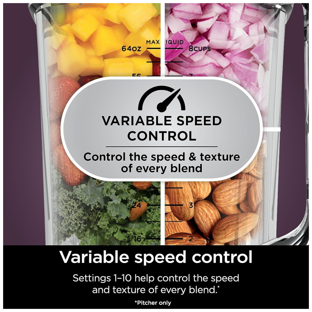 Velocidade Variável: Permite controle manual completo com (10) diferentes configurações de velocidade*. *Apenas na Jarra de Tamanho Completo.