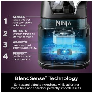 BlendSense: A tecnologia mais inteligente da Ninja que ajusta automaticamente a velocidade e o tempo para resultados perfeitamente suaves. O seletor inovador informa o modo em que o liquidificador está operando, proporcionando uma experiência verdadeiramente amigável ao usuário.