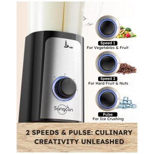 Liquidificador e Processador de Alimentos Multifuncional 5 em 1 500mL com 2 Velocidades e Função Pulsar 110V 350W Sangcon Preto