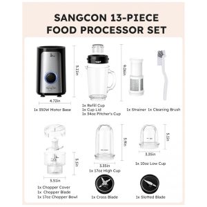 Portanto, o conjunto de liquidificador e processador de alimentos Sangcon 5 em 1 inclui aproximadamente: