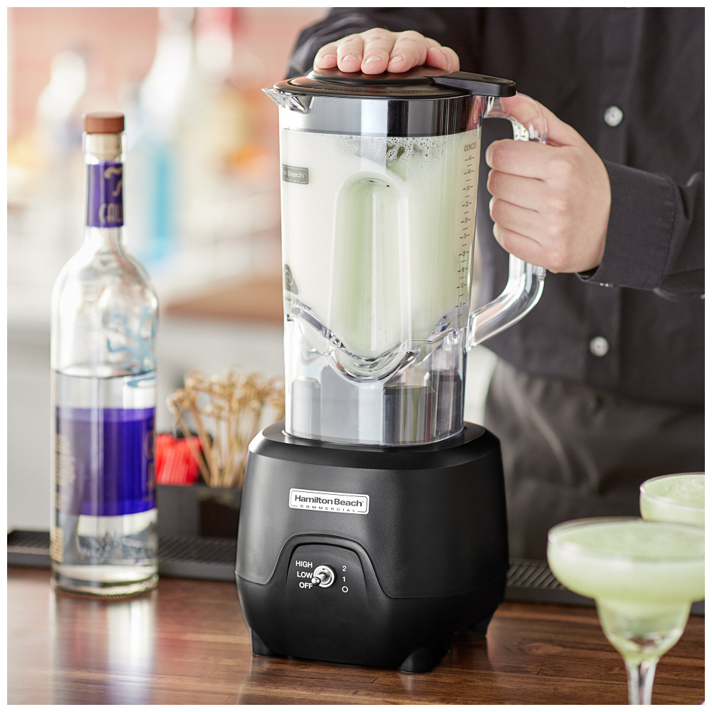 O liquidificador de bar Hamilton Beach HBB908R 1 hp com 2 velocidades e jarra de policarbonato de 1,3 Litros proporcionará aos seus clientes as bebidas misturadas mais suaves que já experimentaram! Com um motor potente de 1 hp, você pode misturar suas bebidas com incrível precisão em duas velocidades – alta e baixa. Este liquidificador mistura uma margarita em apenas 25 segundos! Mesmo com um bar movimentado, seus bartenders poderão preparar bebidas congeladas em questão de segundos. A lâmina de aço inoxidável leva continuamente sua mistura em direção às lâminas, garantindo que não haja pedaços de gelo ou outros resíduos no final do processo de mistura. Em vez de girar em movimento circular como os liquidificadores tradicionais, as lâminas no sistema exclusivo WaveAction se movem para cima e para fora para puxar os ingredientes de cima para baixo para uma mistura uniforme. Além disso, possui uma jarra durável de policarbonato resistente a quebras, marcações de medição em litros fáceis de ler, pés Sure Grip para evitar derrapagens e é fácil de limpar, com a jarra e lâmina removíveis. Um equipamento incrivelmente versátil para uso contínuo e de alto volume. Requer conexão elétrica de 110V.
