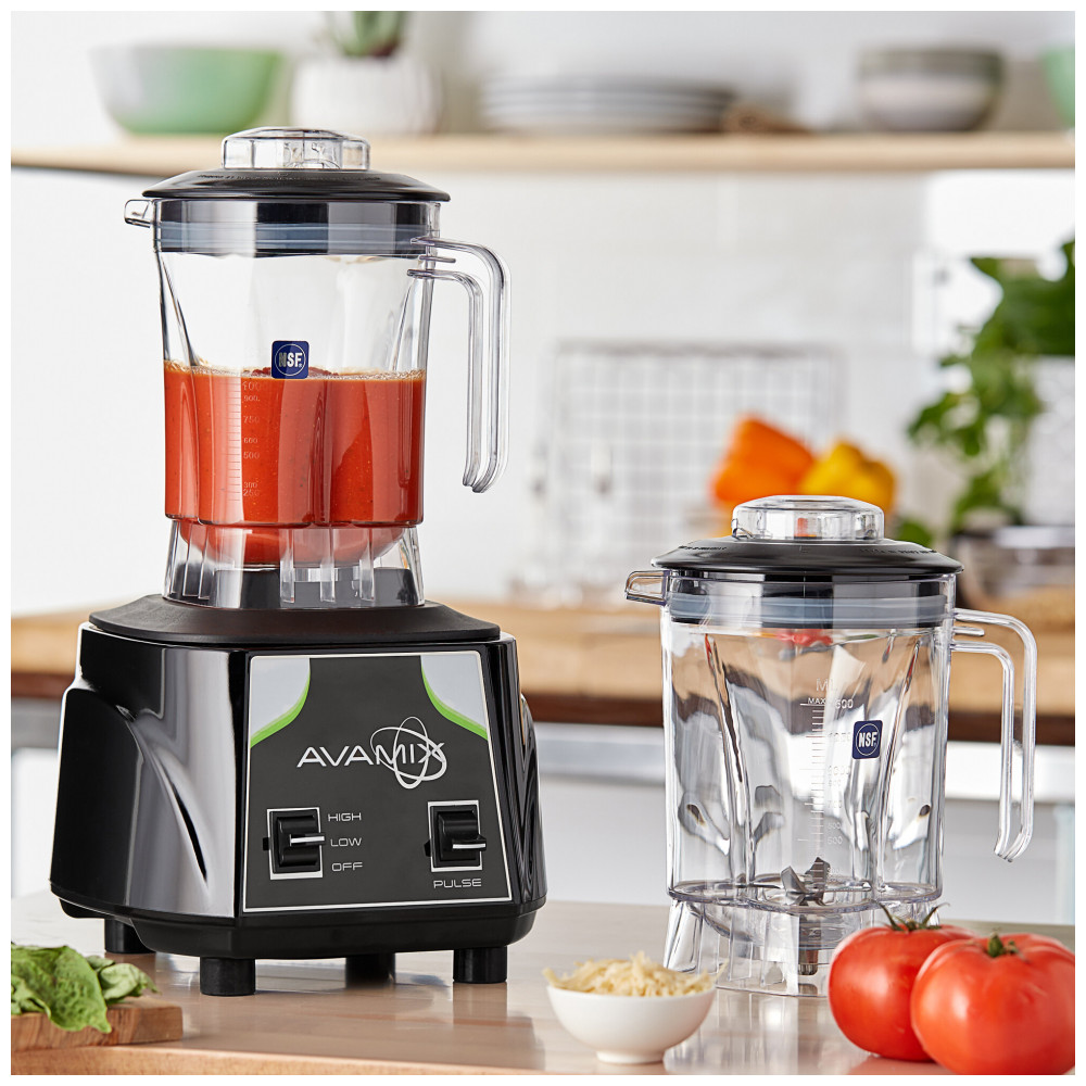 O liquidificador AvaMix é a adição ideal para sua cozinha, graças às suas habilidades superiores para triturar gelo, criar deliciosas bebidas e smoothies misturados e até mesmo servir spreads, salsas e molhos caseiros. Com base de plástico ABS e conjunto de lâminas de aço inoxidável de alta resistência, este liquidificador é equipado para uma variedade de tarefas em sua cozinha comercial. Apresentando um motor de 3,55 cv, 1800W, lâminas de aço inoxidável de alta resistência e um seletor que controla a velocidade das lâminas. Para conveniência adicional, o botão de pulso fornece uma maneira rápida e fácil de acelerar a unidade em alta velocidade. Use esse recurso quando precisar de explosões rápidas de potência para finalizar uma receita. O recipiente de 1,42 litros de Tritan Eastman livre de BPA oferece máxima durabilidade e capacidade para misturas em grande volume. Um design de controle minimalista com um interruptor de alternância e 2 velocidades de mistura mantém a operação simples, direta e fácil para qualquer pessoa aprender. A tampa de duas peças permite adicionar ingredientes em qualquer estágio do processo de mistura, removendo simplesmente a tampa interna. O liquidificador possui uma base de plástico ABS elegante e resistente, que se destaca em qualquer balcão e é fácil de limpar. Além disso, sua construção durável se mantém em ambientes comerciais. Para maior conveniência, inclui pés antiderrapantes que evitam que o liquidificador deslize durante o uso. Uma conexão elétrica de 110V é necessária para operação.