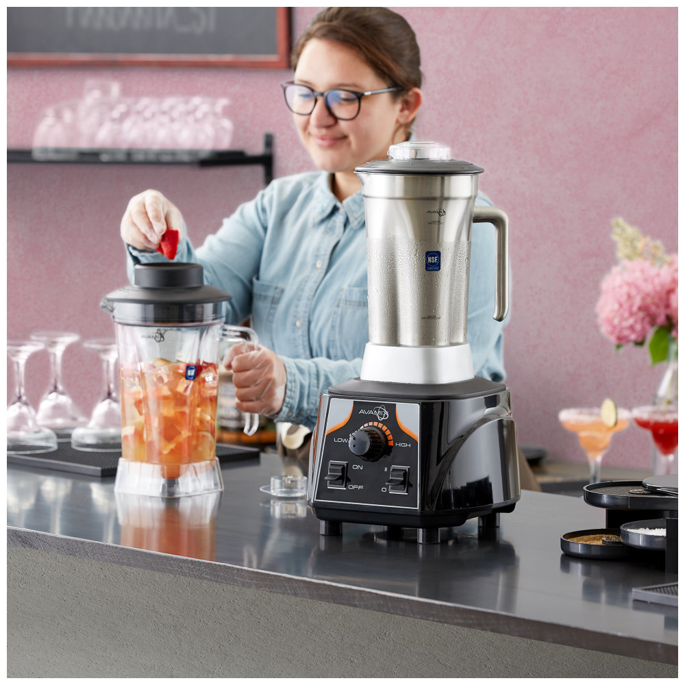 O liquidificador comercial AvaMix BX2000VS combina potência bruta e máxima simplicidade em um liquidificador que pode enfrentar até os bares e restaurantes mais movimentados! Seu motor potente o torna um verdadeiro trabalhador incansável em qualquer ambiente comercial, enquanto um design simples com controle de alternância e velocidade ajustável torna a operação rápida e fácil de aprender. É um liquidificador versátil, perfeito para tudo, desde coquetéis até spreads e molhos, e possui muitos recursos práticos e úteis para manter seu negócio funcionando sem problemas. Com uma jarra de plástico Eastman Tritan de 1,89 Litros livre de BPA, este modelo oferece máxima durabilidade e capacidade de lidar com misturas em grande volume. Adicione ingredientes a qualquer momento no processo de mistura. Remova a tampa central transparente e use o soquete incluso para empurrar os ingredientes para baixo na jarra. Quando terminar de usar o liquidificador, a base e a jarra limpam facilmente. Com um motor de 3,55 cv e 26.000 RPM, este liquidificador é um dos mais potentes disponíveis em sua categoria. Com acoplamento e conjunto de lâminas de metal, ele é capaz de lidar com trituração de gelo, mistura de bebidas, smoothies, spreads ou salsa caseiros e muito mais.