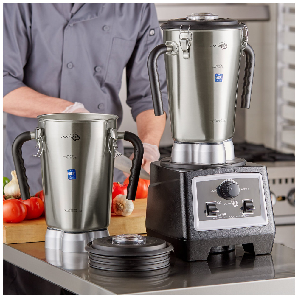 O liquidificador comercial de alimentos de alta capacidade AvaMix BX1GRGV com dois recipientes permite preparar grandes lotes de molhos, dips, salsa e smoothies em pouco tempo! Essencial para restaurantes que fazem grande quantidade de misturas, facilita o processo e amplia as possibilidades do cardápio. Com controles de velocidade variável e botão de pulso, oferece total controle no processo de mistura. O motor potente de 3,80 cv e 26.000 RPM garante eficiência, enquanto a função de iniciar lentamente quebra ingredientes maiores antes de acelerar, evitando bagunças e prolongando a vida útil do motor. Com jarra em aço inoxidável de 3,78 Litros, pás resistentes e pés antiderrapantes, é ideal para uso comercial. As lâminas de aço inoxidável de alta resistência tornam qualquer tarefa fácil. A tampa de duas peças permite adicionar ingredientes durante a mistura. A jarra robusta suporta o uso intenso e mantém a temperatura. Um liquidificador potente e versátil que torna a vida na cozinha mais fácil e amplia as opções do menu.