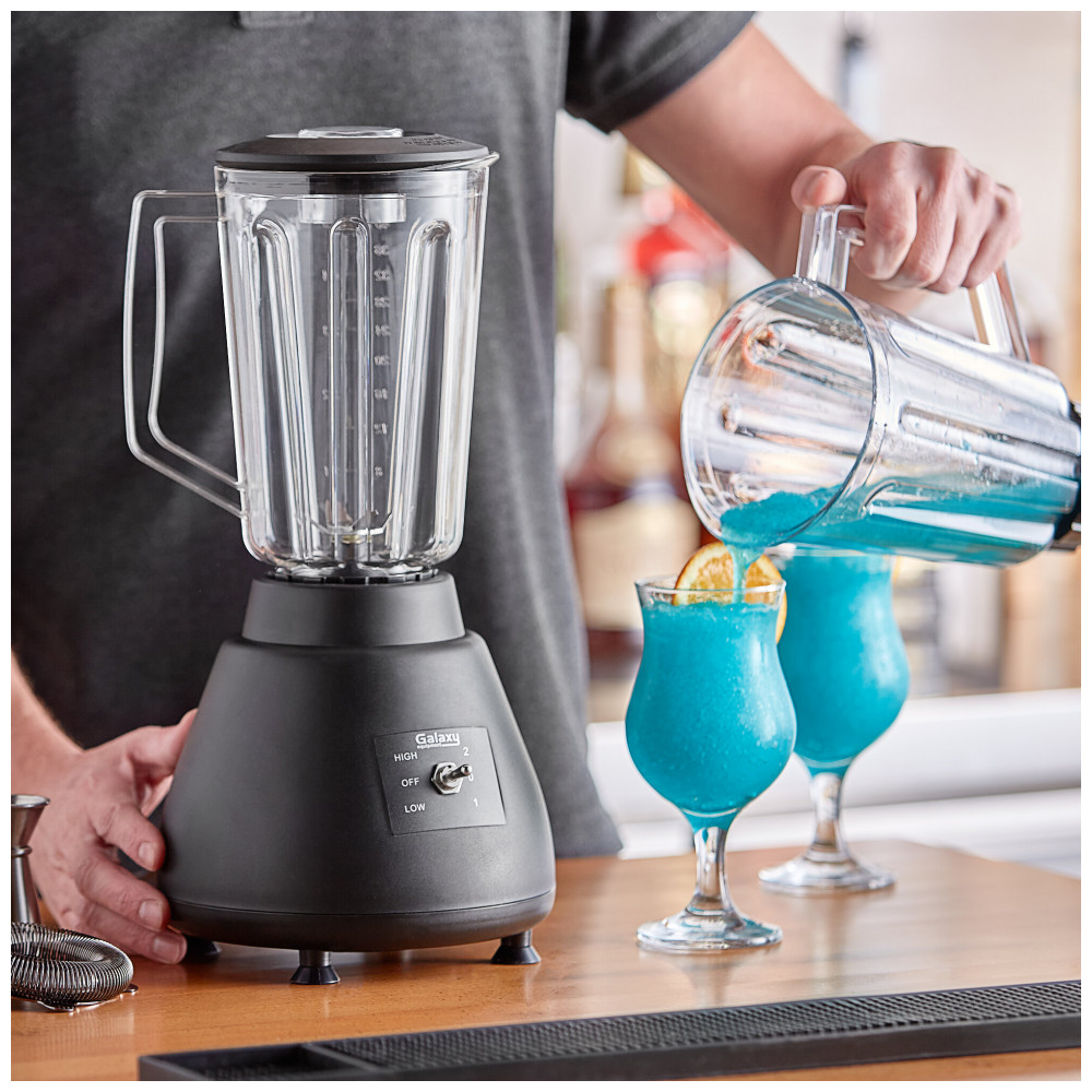 O Liquidificador Galaxy GB440 é equipado com controles de alternância de 2 velocidades, permitindo selecionar entre alta, baixa e desligado. Dois recipientes de 1,3 Litros possuem marcações externas claras para onças, copos, mililitros e litros. Ideal para triturar gelo, preparar coquetéis congelados e pequenos lotes de molhos, criando bebidas em segundos. Com pés de sucção que oferecem estabilidade em diversas superfícies, motor de 12 hp com embreagem de borracha produz até 26.000 RPM. Com uma montagem de lâmina afiada, este liquidificador Galaxy GB440 pode triturar gelo, misturar coquetéis congelados, preparar frapês ou fazer spreads e molhos caseiros. É a adição perfeita para bares, restaurantes e operações que frequentemente preparam bebidas congeladas. Este modelo requer uma conexão elétrica de 110V para funcionar. Com um motor de 12 hp que pode misturar ou misturar bebidas em segundos, este liquidificador é exatamente o que o seu estabelecimento precisa para aumentar a produtividade. Este liquidificador pode atender a qualquer ambiente com sua capacidade de fazer até 24 bebidas por dia. O design do jarro de policarbonato de 1,3 Litros oferece máxima durabilidade, permitindo que este modelo lide com a mistura em grande volume. Além disso, possui marcações externas claras para onças, copos, mililitros e litros para maior conveniência e precisão. Além disso, é resistente a quebras para resistir ao uso a longo prazo! Um simples interruptor de alternância com configurações Alta, Baixa e Desligado elimina todas as dúvidas de suas receitas de bebidas e facilita a operação para a equipe de todos os níveis de habilidade e experiência. A base resistente é compacta e não ocupa muito espaço na sua bancada, enquanto os pés de sucção proporcionam estabilidade e segurança para uso em superfícies planas.